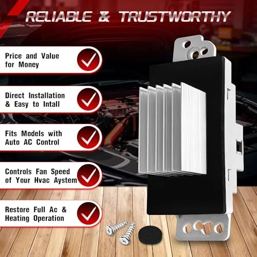 Menu 1. We require immediate payment. 2. We currently accept payment via eBay managed payments only. 3. Once payment is cleared, we will dispatch your shipment within 1-3 business days. Please refer to the "Shipping" tab for more information regarding shipping speed to your destination. 15-81773 HVAC Fan Blower Motor Resistor Kit with Harness Compatible with Chevy Silverado Tahoe Suburban Avalanche Trailblazer GMC Sierra Envoy Yukon XL Replaces 89018778, 89019351, 19260762, RU-631 Product description ✅【COMPATIBLE VEHICLES】This Blower Motor Resistor is for Auto AC Controls, Compatible with 2003-2006 Chevy silverado 1500 2500HD, Suburban 1500 & 2500, Avalanche 1500 & 2500, Tahoe & Trailblazer EXT, GMC sierra 1500 & 1500 HD, Envoy, Yukon & Yukon XL & More. blower resistor ac blower motor resistor blower motor resistor kit ac blower resistor hvac blower motor resistor blower fan resistor 89018778 tahoe blower motor. ✅【COMPATIBLE OEM NUMBERS】89018778, 15-80906, 18-81773, 1581773, 15-80567, 89019351, 19260762, 93803636, 89018964, 52495874, JA1639, RU-631, 52409643, 52413530, 52495874, 1580567, 1711975【NOTE】Please check the description or use the year/make/model drop down bar and interchangeable part numbers to confirm the compatibility before purchase our this Blower Motor Resistor. ✅【DIRECT FIT & EASY INSTALLATION】Direct replace your original HVAC Fan Blower Motor Resistor and easy installation. The Blower Motor Resistor is located on lower passenger side and it can accessible by removing a few screws. Simply remove the screws that secure the blower motor resistor into the blower, remove the resistor assembly, and install the new resistor in place. 1581773 15-81773 fan motor resistor 89019351 ac blower motor resistor kit with harness blower motor resistor ac harness ac blower motor resistor 19260762. ✅【PREMIUM QUALITY】TOP quality HVAC Blower Motor Resistor Module, meets or exceeds OEM standards, While this is not a genuine OEM part, it is a direct replacement, 100% tested before shipping. We only use the highest grade materials to enhance your love car performance. hvac fan blower motor resistor chevrolet blower motor resistor hvac blower motor resistor kit blower motor resistor wiring harness hvac blower motor fan resistor. ?【ONE-YEAR-WARRANTY】 Every product must take inspected and tested multiple times before the shipment, if you get any problems with our this Blower Motor Resistor, please contact us in the first time, If the product does not work or malfunctions, we can provide free replacement or refund. PLEASE MESSAGE US IF YOU HAVE ANY OTHER QUESTIONS, AND MANY THANKS FOR READING ALL OF THIS. Copyright ©#. All Rights Reserved.