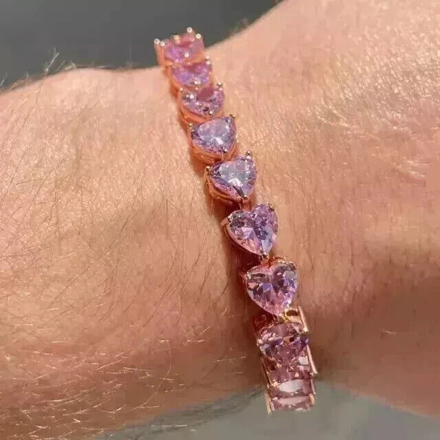 $ 13.7312 Ct Round 4mm Purple Amethyst Tennis Bracelet 14K White Gold Finish 7.5"IN
