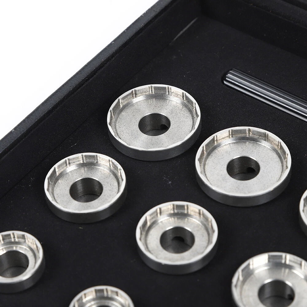 15Dies Watch Back Case Opener Die Fit Breitling Removal Tool opener Set/Kit USA Description: 15 Dies Case Back Cover Opener Kit for Bottle Opener Removal Repair Tool Made of High-quality Stainless Steel with Aluminum Handle and 15 Stainless Steel Molds. It Can Be Used to Open Other Cases of Expensive Watches. Bre 1: 19.12mm Bre 2: 23.45mm Bre 3: 25.90mm Bre 4: 26.00mm Bre 5: 26.75mm Bre 6: 26.80mm Bre 7: 29.5mm Bre 8: 33.36mm Bre 9: 34.60mm Bre 10: 35.75mm Bre 11: 36.03mm Bre 12: 36.8mm Bre 13: 37.7mm Bre 14: 42.02mm Bre 15: 43.72mm How to Remove the Watch Band: 1. Make Sure You Are on a Flat Surface (Table or Table). Place the Watch on a Cloth or Towel to Avoid Scratching. 2. Take the Table Below. Press One End of the Spring Rod from the Back of the Watch, Use the "Spring Rod Remover Tool", and Use the Spring Rod to Remove the Fork (Fork) End of the Tool Between the Lug and the Strap. the Spring Rod Removal Tool Has a Tool That Will Grab the Ridge and Allow It to Compress. 3. Apply a Slight Pressure to the Strap (Away from the Lug) to Depress the Spring Lever. at the Same Time, Applying some Downward Pressure, the Spring Rod Will Pop out. Once Again, You Just Took the Table Band from the Case. How to Install the Strap: 1. Make Sure You Are on a Flat Surface (Table or Table). Place the Watch on a Cloth or Towel to Avoid Scratching. 2. Insert the Spring Strips into the Holes on Both Sides of the Belt. Push Them All in and Center Them Inside the Strap. 3. Install the Short End of the Strap (the Side of the Buckle Is at 12 O'clock). Insert the End of the Spring Rod into the Hole in the Case Lug from the Back of the Watch. Use the Spring Lever Removal Tool (Forked "Fork" End) to Press the Other End of the Spring Rod into the Hole in the Lug. Make Sure That Both Spring Bars Are in Their Holes by Pulling Them Slightly, or That the Straps Are Coming off the Watch. Give It a Little Drag to Make Sure It Is Safe. 4. Repeat the Above Steps on the Other Side. the Long End of the Strap (with Holes) Is at 6 O'clock. Package Included: *1 Set of Case Back Bottle Opener Kit (15 Molds) Payment Delivery details Terms of sales About us Contact us Payment We accept ebay payment 。 Fees such as import duties, taxes are not included in the item price or shipping costs. These charges are the buyer's responsibility. Delivery details Shipping: 2-9 working days to: USA Terms of sales We maintain high standards of excellence and strive for hundred percent customer satisfaction. Feedback is very important to us. We hope that you contact us immediately before you give neutral or negative feedback, so that we can address your concerns. It is impossible to address issues if we do not know about them! About us Your satis faction is our ultimate goal. We work hard to earn your trust and future business. Our certified technicians have tested each item before shipping. The unit comes with 1 year limited warranty on all manufacturing defects. a) If you receive a defective item, you may return it or ask for a discount. Please contact us within 14 days after you receive the package. b) What you returned must be intact and in its original packaging as re? u. Customer is responsible for shipping costs of the returned item. c) We will cover the cost of shipping back t with the shipping rate indicated in the registration page. We will send you a new unit or refund the full payment you paid. Thank you. Contact us Business Hour Business Hour: Monday To Friday: 8:30 AM to 5:00 PM (Beijing China time) Due to time zones, our reply to your questions may not be immediately. But within above working time, we will reply your email within 24 hours. If it's non-workdays, please kindly be patient and wait till Monday. Please contact us with ebay message. Please feel free to contact us if you have any questions. Monday To Friday: 8:30 AM to 5:00 PM (Beijing China time) Due to time zones, our reply to your questions may not be immediately. But within above working time, we will reply your email within 24 hours. If it's non-workdays, please kindly be patient and wait till Monday. Please contact us with ebay message. Please feel free to contact us if you have any questions. On Feb 24, 2026 at 18:42:49 PST, seller added the following information: