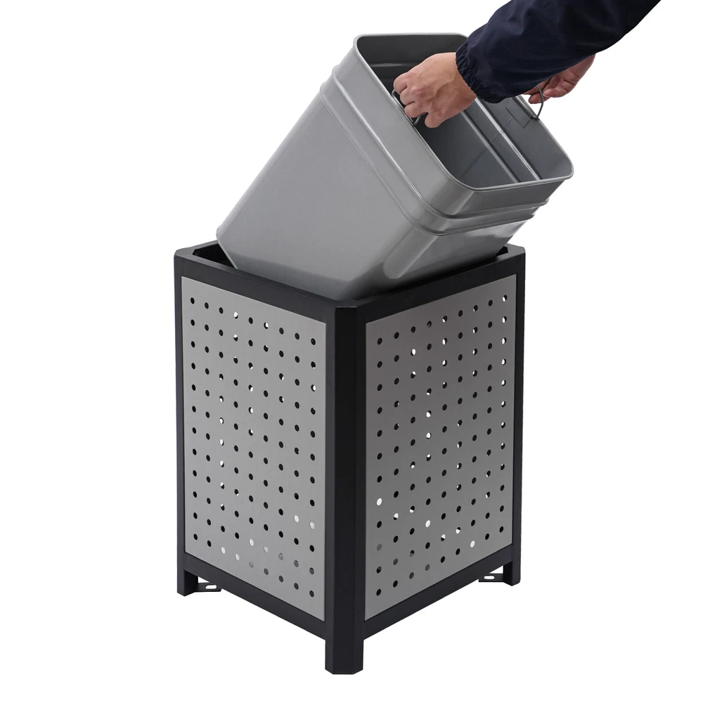 Specifications Color: Grey Material: Galvanized Board, Stainless Steel Surface Treatment: High-Temperature Plastics Spray, Bake Paint Recommended Uses For Product: Outdoor Shape: Square Mount Type: Screw Mounted Assembly Required: Yes Capacity: 56.78L/15gal Product Size(W*H): 40.64*84.46cm/16*33.25inch Side Opening Size: 26.67*16.51cm/10.5*6.5inch Packaging Size: 86*41*41.5cm/33.86*16.14*16.34inch Gross Weight: 12kg/26.46lbs Net Weight: 11kg/24.25lbs Package Included 1* Industrial Waste Container 4* Expansion Bolts 15 Gallons Steel Garbage Can For Outdoor Use Trash Receptacle With Plastic Liner Description The industrial waste container is made of high-quality galvanized sheet material with a smooth, rust-resistant surface for long-lasting durability. Its 15-gallon large capacity design can store more garbage, effectively reducing the pollution of garbage, and is more convenient for garbage cleaning and management. Its modern style and generous appearance design make it blend into the surrounding environment, which is not only practical but also beautiful. It is an indispensable item in modern life and an excellent waste disposal solution for you! Key Features Premium Material: It is made of galvanized board featuring high hardness, high strength, and resistance to rust, corrosion, and heat. Besides, its high-temperature plastic spray and bake paint processes provide extra protection to its surface, greatly extending its service life. Exquisite Appearance: Its modern style appearance will show you the beauty of simplicity and neatness, making it also a good view on the street or in your backyard garden. Large Capacity: Its 15-gallon capacity can hold more trash and greatly reduces the number of times you have to clean out your trash, which helps you save time and be more productive. Easy to Install: Its most parts are well assembled, you just need to put the inner barrel in and install the lid and fix it on the ground with four expansion bolts, which will not cost you much time. Ventilate Design: The great number of ventilated holes and grid-style bottom provide it with a wonderful ventilation condition to dispel the odor generated by garbage and reduce bacterial growth. Convenient to Use: Its four-sided wide-opened mouth( 10.5*6.5 inches ) can swallow your garbage from each side you throw, which is very convenient. Easy to Clean: Its smooth surface, detachable lid and inner barrel make the clean work easy and labor-saving with water flushing or wiping it with a damp cloth. Customer Service: We aim to provide quality products and services. If you have any problems, please feel free to contact us. We will reply and solve the problem for you as soon as possible. Details Inner Barrel with Handle: With two handle rings, you can easily lift it out for cleaning or dumping garbage. Top Cover: It helps to protect against rain and snow, thus preventing odors from being aggravated by wet garbage and reducing sweeping pressure. Elevated Base: It separates the inner barrel from floors, pests , and dust and reduces the abrasion that can occur when in contact with hard surfaces. Application It can be used in conference rooms, banquet halls, restaurants, hotel lobbies, outdoor patios, cafes, recreation and picnic areas, corporate and college campuses, boardwalks, tourist attractions, and other high-traffic outdoor and indoor locations. Specifications Color: Grey Material: Galvanized Board, Stainless Steel Surface Treatment: High-Temperature Plastics Spray, Bake Paint Recommended Uses For Product: Outdoor Shape: Square Mount Type: Screw Mounted Assembly Required: Yes Capacity: 56.78L/15gal Product Size(W*H): 40.64*84.46cm/16*33.25inch Side Opening Size: 26.67*16.51cm/10.5*6.5inch Packaging Size: 86*41*41.5cm/33.86*16.14*16.34inch Gross Weight: 12kg/26.46lbs Net Weight: 11kg/24.25lbs Package Included 1* Industrial Waste Container 4* Expansion Bolts Notes Please check the size carefully before ordering. It is normal that the expansion screw will blow up after the force is applied. Please allow the slight color difference caused by the shooting light and 1-3cm error due to manual measurement, and make sure you do not mind before you order. Payment Delivery details Terms of sales About us Contact us Payment We accept ebay payment 。 Fees such as import duties, taxes are not included in the item price or shipping costs. These charges are the buyer's responsibility. Delivery details Shipping: 2-9 working days to: USA Terms of sales We maintain high standards of excellence and strive for hundred percent customer satisfaction. Feedback is very important to us. We hope that you contact us immediately before you give neutral or negative feedback, so that we can address your concerns. It is impossible to address issues if we do not know about them! About us Your satis faction is our ultimate goal. We work hard to earn your trust and future business. Our certified technicians have tested each item before shipping. The unit comes with 1 year limited warranty on all manufacturing defects. a) If you receive a defective item, you may return it or ask for a discount. Please contact us within 14 days after you receive the package. b) What you returned must be intact and in its original packaging as re? u. Customer is responsible for shipping costs of the returned item. c) We will cover the cost of shipping back t with the shipping rate indicated in the registration page. We will send you a new unit or refund the full payment you paid. Thank you. Contact us Business Hour Business Hour: Monday To Friday: 8:30 AM to 5:00 PM (Beijing China time) Due to time zones, our reply to your questions may not be immediately. But within above working time, we will reply your email within 24 hours. If it's non-workdays, please kindly be patient and wait till Monday. Please contact us with ebay message. Please feel free to contact us if you have any questions. Monday To Friday: 8:30 AM to 5:00 PM (Beijing China time) Due to time zones, 