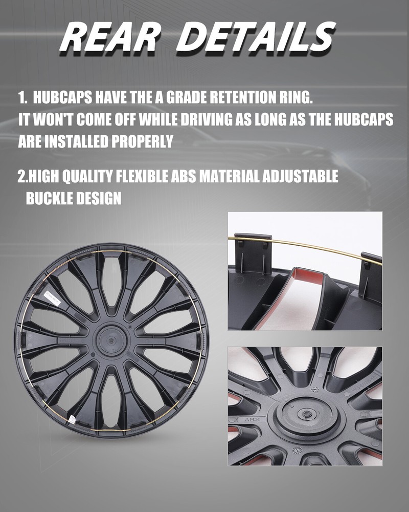 Store Categories Other Car Refrigerator Front Bumper Rear Bumper Fender Flares Inner Fenders Side Steps Running Board A-Pillar Light Mount Brackets Headlights Taillights Fog Lights LED Headlights LED Taillights LED Fog Lights Jeep Chevrolet Ford Toyota Dodge GMC About this item ✴ Universal Fit - Design for 15" iron hubs,NOT for aluminum alloy hubs. Please know that and check your wheel before purchase to ensure fitment. ✴ Protect Your Wheels - Keep your vehicle looking sleek and new with these universal-fit hubcaps that offer reliable protection against scratches, dings, and other types of damage. ✴ Easy to Install - Designed to fit most standard wheel size, these hubcaps can be quickly and easily snap on your wheels without the need for special tools, making them a great choice for busy vehicle owners. ✴ Durable - Made from high-quality ABS materials, these hubcaps are built to withstand the rigors of daily use, keep your vehicle looking great for years. ✴ Stylish - Upgrade the look of your car or truck with these sleek hubcaps to enhance the appearance of your vehicle. Wheel Covers Specification ✴ Type: Hub caps ✴ Number in Pack: 4 ✴ Color: Black Lacquer & Red Lacquer ✴ Material: ABS ✴ Compatible Wheel Diameter: 15 in ✴ Finish: Glossy ✴ Installation Type: Snap-On ✴ Model: Universal Hubcap for Iron Wheels, Not fit for 2006-2018 Volkswagen Jetta, Not fit for 2009-2014 Volkswagen Golf Wheel Covers Package ✴ 1 Set of 4 Hub caps and 4 retention rings Payment Delivery details Terms of sales About us Contact us Payment We accept PayPal, credit card , Apple Pay & Google Pay etc. Delivery details All items will be shipped within 1-3 business days after payment received, we will try our best to ship out as soon as we can, hope for your understanding. Please double confirm your address and contact information, which will help the delivery faster and more accurately. Note :buyers who purchase international products need to pay import tariffs!!! Terms of sales Professional installation is highly recommended. Any problem of the item please feel free to contact us first , please D o Not leave negative feedback before that, or simply return it within 60 Days in original condition. We will resolve it for you ASAP. About us Any questions please do not hesitate to contact us directly by eBay message . We will reply you within 24 hours asap, thanks for your understanding. Contact us Should you have any problem or require any further information please feel free to contact us . If you are satisfied with our product and service, please kindly leave us a positive feedback. Popular Categories On Apr 18, 2025 at 06:04:20 PDT, seller added the following information: