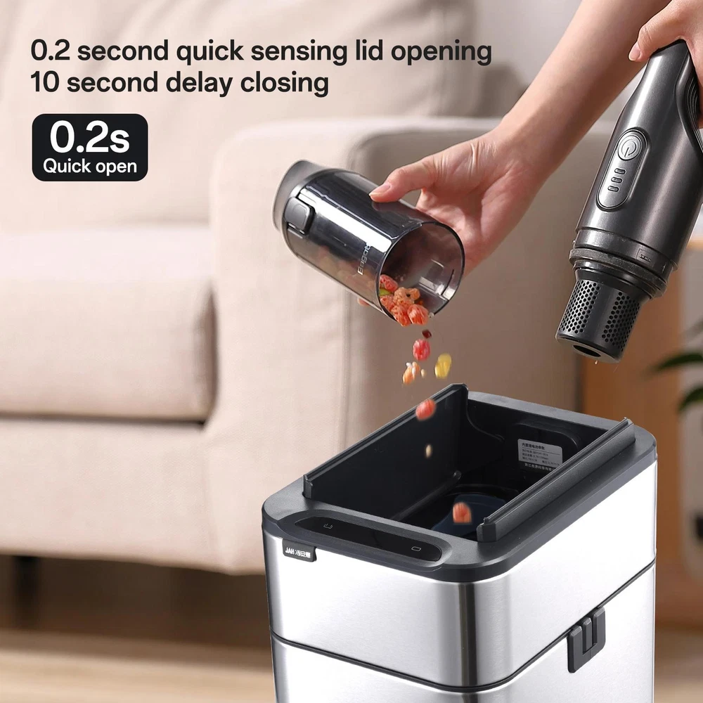 Store category Sign Up Now ! You may also like Product Description Bullet Points: Quick Reaction: With about 0.2s quick induction to open and about 10 seconds bass delay closing, simply waving a hand ensures a seamless and hygienic experience Safe to Operate: The two-way side sliding opening of our Kitchen Trash Can ensures that the lid drops to both sides, preventing any relation with your hands. This hygienic solution makes it easy to use daily Motion Sensor: With a motion sensor that allows for no touching, this kitchen trash can makes it easy to throw away garbage, letting you not use your hands at any time without bending Easy Usage: Experience effortless waste management with this Kitchen Trash Can's 1-button design- press the right button for a prompt lid closure in 10 seconds. The button light flashes when open, ensuring easy usage Waterproof Characteristics: Thanks to its IPX4 waterproof rating, our Kitchen Trash Can operates as expected even in bathrooms and other humid areas. No need to worry about water damage With a 10-second delay closing and 1-button normally open design, it's easy to use without bending. This touchless trash can is a must-have for any modern household. Specification: Product name: Touchless Trash Can Color: Silver, White Product Material: ABS + Stainless Steel Capacity: 15L Two Mode: Infrared Sensing, 1-button Normally Open, 1 pull drawstring Battery Capacity: 1200mAh Battery Life: 30-60 Days Voltage: 5V Power: 1.5w Packing List: 1*Automatic Garbage Can 1*Instruction manual 1*USB charging cable 1*Roll of garbage bag Payment Delivery details Terms of sales About us Feedback & DSRs Payment Before you palce an order, please kindly make sure that you have a paypal account. We accept PAYPAL payment only. Payment should be completed within 2 days after auction closed, or unpaid dispute will be filed for an closing auction. An unpaid case will be filled after 4 days. Delivery details We ship to your eBay address. Each package will be shipped to US by UPS Regular Parcel with tracking number. Please check your shipping address carefully before checkout, it can't be changed if order completed. All items will be shipped within 1-2 business day upon receipt of payment.Orders placed on weekend will be shipped within 3 days. If you do not receive your item in 7-10 business days.please contact us immediately for further assistance. We will be responsible for any damages or losses incurred in the shipping process. About us We maintain high standards of excellence FIVE STAR and strive for 100% customer satisfaction! Positive Feedback is very important to us. We hope that you contact us immediately Before you give us neutral or negative feedback, so that we can satisfactorily address your concerns. We promise to offer the lowest price and high quality produce. Our working time: From Monday to Friday(9:30 am to 18:00pm), we don't working on holidays ,hope you can understand and know that , thank you. Please always talk to us via ebay Message. We appreciate your business and look forward to growing our e-Bay sales with satisfied customers. Feedback Contact us If you have any questions, please feel free to contact with us by ebay Message during our business hours ( 9:30a.m. to 5:30 p.m.), or email us through eBay, we will try our best to help you to resolve it. For any presale or after-sale questions,please do feel free to email us! Due to the time difference, each email will be replied within 1 working day,and weekend will be delayed a bit. Feedback