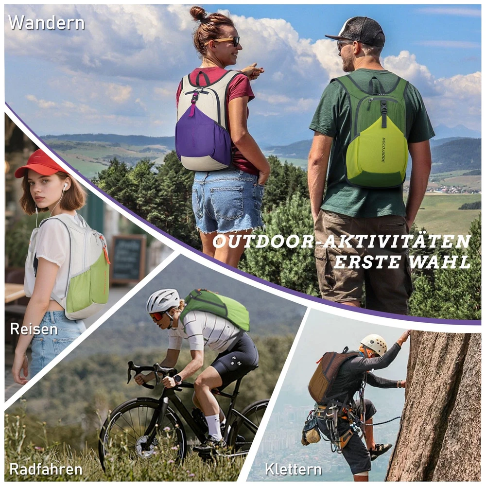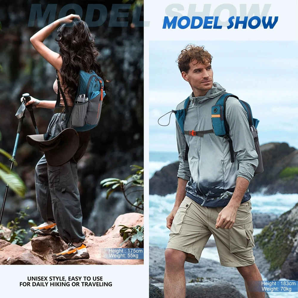 Product Name: Small Hiking Backpack Product Description: Elevate your outdoor adventures with our lightweight hiking backpack, meticulously designed to be the ultimate companion for hikers and explorers alike. Specifications: Weight: 310g / 0.68LB Capacity: 15L Dimensions: 45cm x 28cm x 13cm / 17.7in*11in*5.1in Color Options: Choose from a stylish palette of Black, Beige, Turquoise, and more. Features: 1. This innovative backpack merges function and convenience, featuring a zippered pocket on the left side, perfect for securely holding your phone, and a drawstring pocket on the right for quick access to hiking essentials. 2. Comfort is paramount during hikes, and our day packs lightweight for men delivers with breathable mesh shoulder straps that provide superior ventilation. Built with reinforced stress points, this durable backpack is engineered to handle the challenges of tough terrains, ensuring that it remains a reliable partner on every journey. 3. The adjustable chest strap facilitates a customizable fit, allowing for both vertical and circumferential adjustments, ensuring that your day bag stays snug and secure as you traverse various landscapes. 4. Crafted from tear-resistant and scratch-proof fabric, our foldable backpack is both robust and practical. Suitable For: Whether you're navigating the trails or spending a day at the amusement park, this small daypack is perfect for both men and women. Explore with confidence and style. Choose our small travel backpack for your next adventure, and embrace the great outdoors like never before. Unique Strap Design: Our small backpack features an innovative strap design with a zippered phone pocket on the left and a drawstring pocket on the right. The breathable mesh shoulder straps ensure comfort during your outdoor adventures, while reinforced stress points prevent strap breakage. Adjustable Chest Belt: This daypack hiking backpack includes an adjustable chest belt for both vertical and circumference adjustments, ensuring a secure fit. The buckle also doubles as a survival whistle, providing convenience during emergencies. Durable and Packable Backpack: Made from tear-resistant, scratch-resistant fabric, this hiking bag can be easily folded into its own zippered pocket. The mini backpack has unfolded dimensions of 17.7 in x 11in x 5.1in; folded dimensions of a compact 7in x 6.3in. Organized Multi-Pocket Design: With a capacity of 15L, this lightweight backpack for travel features several compartments, including a front elastic mesh pocket, a front zippered pocket, 2 water bottle holder, and a rear anti-theft zippered pocket, keeping your essentials organized and accessible. Versatile for Various Activities: Ideal for hiking, traveling, mountaineering, outdoor cycling, daily leisure, and commuting, this lightweight hiking backpack is the perfect accessory for any adventure. Suitable for both men and women, it meets all your hiking needs effortlessly.