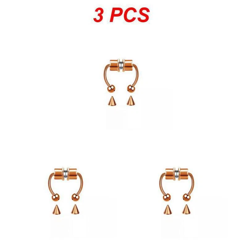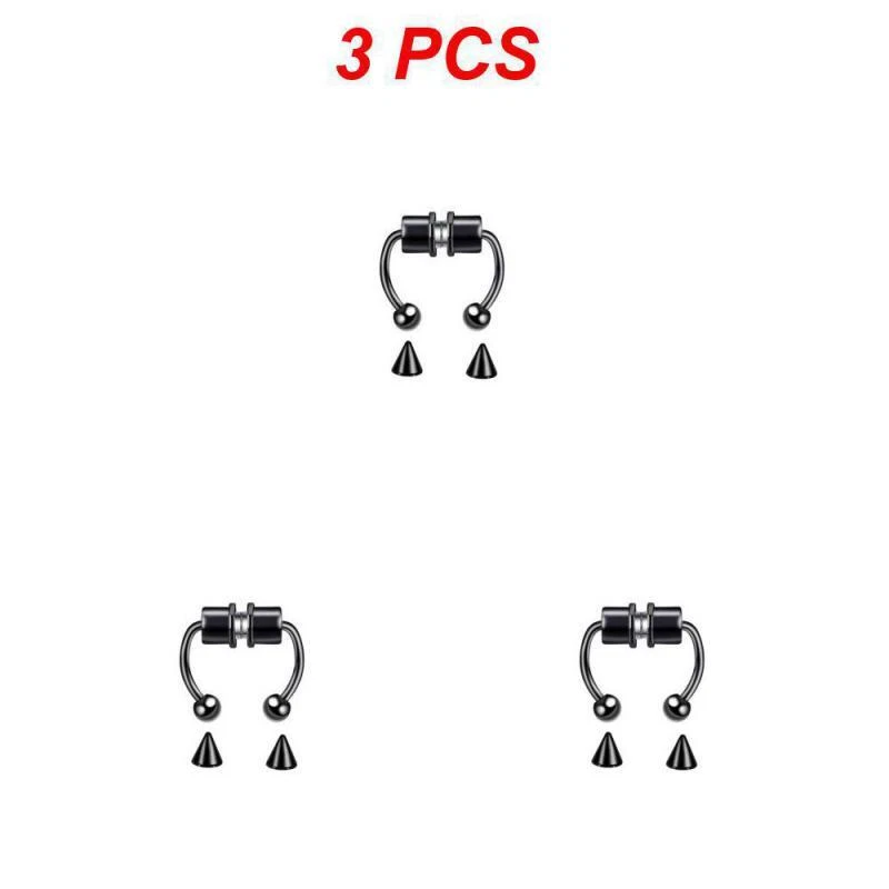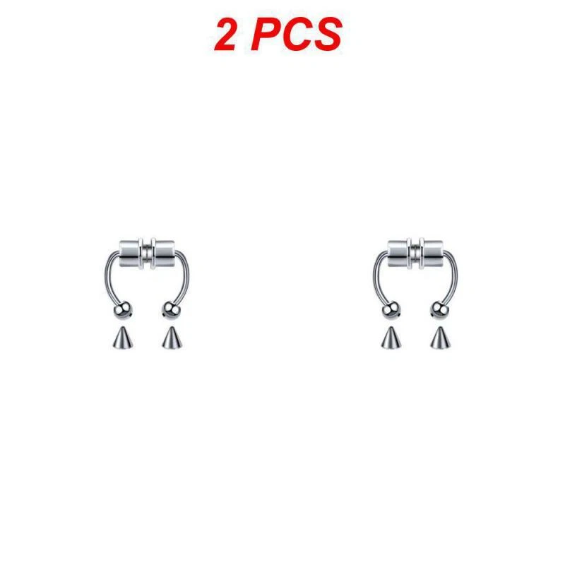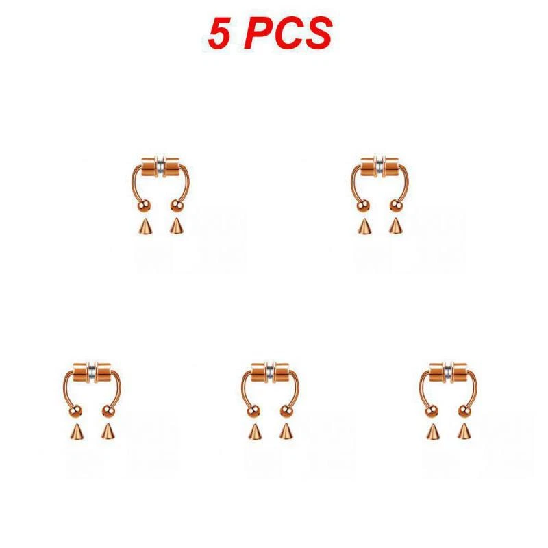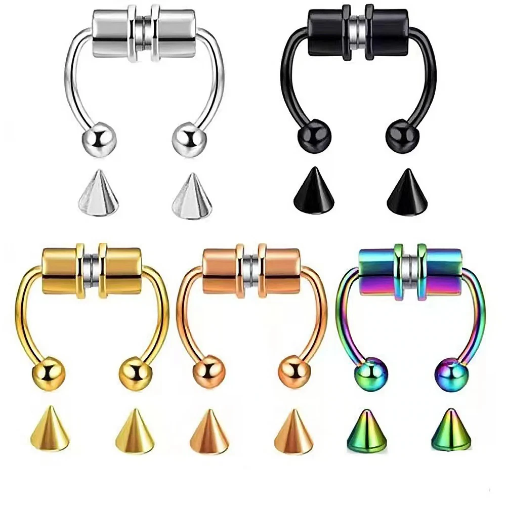 1~5PCS Stainless Steel Magnet Nose Ring Horseshoe Ring Nose Clip Non-pierced Nose Hoop Magnetic Nose Nail piercing nariz Description: 【Stainless steel】 These fake nose rings are made of high quality 316L stainless steel, are hypoallergenic, nickel-free and lead-free. They are safe to wear and do not harm your skin. They have a highly polished, smooth surface and are easy to wear and take off. 【Unique design】 These fake nose horseshoe rings are so cool and charming that you will be attractive in the crowd. Do not worry about the magnetic force, they are comfortable enough to be worn all and do not fall off easily. 【Available sizes】: (1.2mm); Inner Diameter: 10mm (3/8); Ball Size: 3mm, Replacement Tip Size: 3mm 【Great gift】 Ideal gift for horseshoe rings with false nose for your wife, husband, daughter, friends on birthdays, anniversaries, Valentine's Day, Mother's Day, etc. Popular artificial nose rings for women, surprise gift for her, to remind the special of how much you care. 【Frequent occasions】 You can coordinate these non-penetrating fake septum rings with your clothes for daily wear and work. They are also suitable for other occasions such as party, dinner, travel etc. Just show your own style and make you shine. Specifications: 【Name】:Stainless steel nose ring 【Color】: silver, black, color, gold, rose gold, blue (customized) 【Size】: Steel ball 3mm sharp cone 3mm The distance between the two balls is about 10mm (there is a slight error in manual measurement, subject to the actual distance) 【Weight】: 1.8g/piece 【Packing】: opp independent packaging Package Included: 1*Nose ring 2*Steel cone