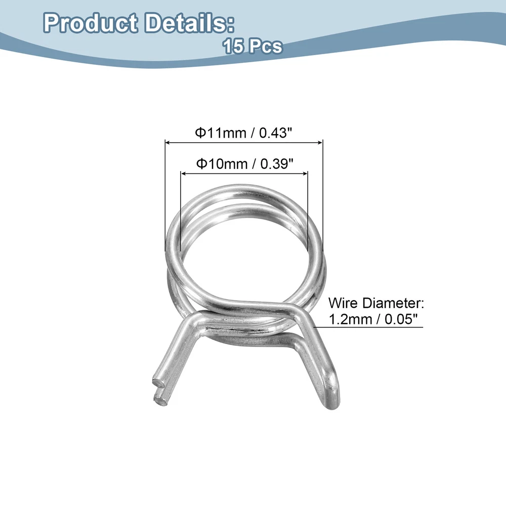 15Pcs 10mm/0.39inch Double Wire Spring Hose Clamp