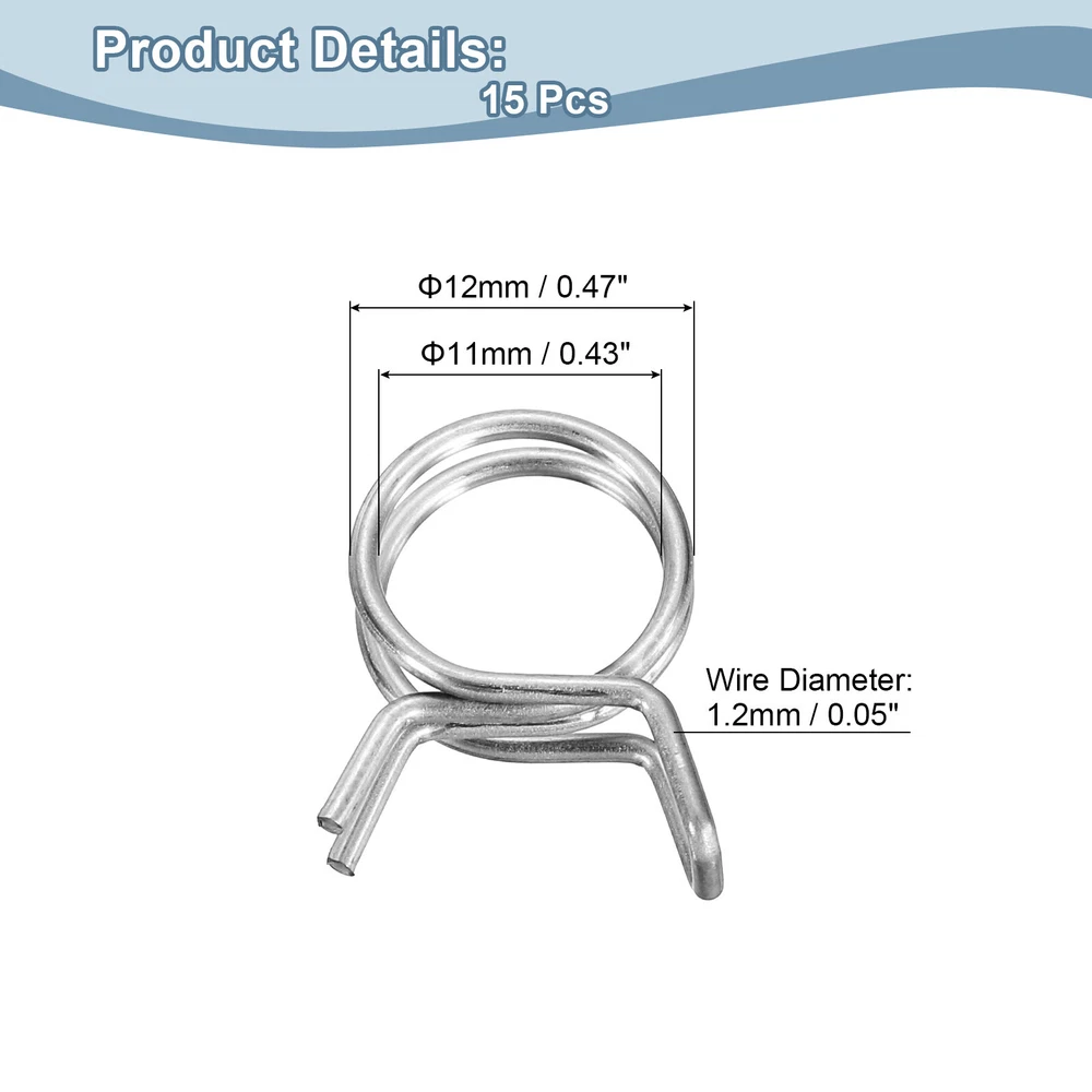 Document Description: Material: Made of stainless steel with a polished surface, these spring hose clamps are corrosion and rust-resistant for long-term use.Design: The spring hose clamps are designed with double-wound wire, which can spread the clamping force around the hose, and is more cost-effective than single-wire clamps.Easy to Use: These spring hose clamps are very easy to use, just use pliers to open the clamp and easily place it on the pipe.Wide Application: Spring hose clamps are widely used in automotive, agricultural, factory, and construction industries. Mainly used for fastening interfaces, they can firmly lock power equipment fuel lines, air hoses, water pipes, silicone hoses, vacuum hoses, automobile fuel lines, motorcycle air pipes, etc.Specification:Material: Stainless SteelFinish: PolishedInner Diameter: 11mm / 0.43inchMaximum Open Inner Diameter: 12mm/0.47inchWire Diameter: 1.2mm / 0.05inchPackage Content: 15pcs x Spring Hose Clamp Double Wire Spring Hose Clamp, 50pcs 304 Stainless Steel 10mm Spring Clips USD 11.2 Double Wire Spring Hose Clamp, 10pcs 304 Stainless Steel 5.5mm Spring Clips USD 6.71 Double Wire Spring Hose Clamp, 20pcs 304 Stainless Steel 5mm Spring Clips USD 7.49 Double Wire Spring Hose Clamp, 20pcs 304 Stainless Steel 3.5mm Spring Clips USD 7.49 Spring Hose Clamp, 50pcs 65Mn Steel 18mm Low Pressure Air Clip, Zinc Plated USD 21.04 Fuel Line Hose Clips, 5pcs 55mm 65Mn Steel Tubing Spring Clamps USD 8.67 15Pcs 11mm/0.43inch Double Wire Spring Hose Clamp Description: Material: Made of stainless steel with a polished surface, these spring hose clamps are corrosion and rust-resistant for long-term use. Design: The spring hose clamps are designed with double-wound wire, which can spread the clamping force around the hose, and is more cost-effective than single-wire clamps. Easy to Use: These spring hose clamps are very easy to use, just use pliers to open the clamp and easily place it on the pipe. Wide Application: Spring hose clamps are widely used in automotive, agricultural, factory, and construction industries. Mainly used for fastening interfaces, they can firmly lock power equipment fuel lines, air hoses, water pipes, silicone hoses, vacuum hoses, automobile fuel lines, motorcycle air pipes, etc. Specification: Material: Stainless Steel Finish: Polished Inner Diameter: 11mm / 0.43inch Maximum Open Inner Diameter: 12mm/0.47inch Wire Diameter: 1.2mm / 0.05inch Package Content: 15pcs x Spring Hose Clamp Hot Item Fuel Line Hose Clips, 20pcs 13mm 65Mn Steel Tubing Spring Clamps USD 7.22 Double Wire 10mm Fuel Line Hose Tube Spring Clips Clamp Zinc Plated 50Pcs USD 8.82 Fuel Line Hose Clips, 20pcs 9mm 65Mn Steel Tubing Spring Clamps USD 7.41 Double Wire 16mm Fuel Line Hose Tube Spring Clips Clamp Zinc Plated 10Pcs USD 6.85 Fuel Line Hose Clips, 20pcs 15mm 304 Stainless Steel Tube Spring Clamps(Silver) USD 7.68 Payment We accept eBay payment. Please do not email us to ask for other payment option. We appreciate prompt payment and look forward to your business in the future. Unpaid item will be filed without receiving payment in 7 days from listing ended. Shipping Usually we ship your order out within 24 hours in business day. For shipping and handling charges (S&H) for specific item, please refer to the item listing page for more details. Please make sure your shipping address is correct. We are not responsible for any loss in transit if a wrong address is provided. Return Policy Returns for exchange are permitted and must be initiated by the buyer within 30 days upon receipt. If you would like to return your product(s) for repair / replacement / refund, please kindly contact our customer service representatives via email for an authorized RMA number. Your returned product(s) will not be processed without a completed RMA. About Us We are continually expanding our product selection to better serve your need. We look forward to providing the best sevice to you - our dear customers, so take a look around our store and find the product that you want. You can put your trust in us! If you need any help or have any suggestions, please don't hesititate to contact us anytime , we will reply you within 24 hours and try the best to help you. Description Policy 15Pcs 11mm/0.43inch Double Wire Spring Hose Clamp Description: Material: Made of stainless steel with a polished surface, these spring hose clamps are corrosion and rust-resistant for long-term use. Design: The spring hose clamps are designed with double-wound wire, which can spread the clamping force around the hose, and is more cost-effective than single-wire clamps. Easy to Use: These spring hose clamps are very easy to use, just use pliers to open the clamp and easily place it on the pipe. Wide Application: Spring hose clamps are widely used in automotive, agricultural, factory, and construction industries. Mainly used for fastening interfaces, they can firmly lock power equipment fuel lines, air hoses, water pipes, silicone hoses, vacuum hoses, automobile fuel lines, motorcycle air pipes, etc. Specification: Material: Stainless Steel Finish: Polished Inner Diameter: 11mm / 0.43inch Maximum Open Inner Diameter: 12mm/0.47inch Wire Diameter: 1.2mm / 0.05inch Package Content: 15pcs x Spring Hose Clamp Double Wire Spring Hose Clamp, 50pcs 304 Stainless Steel 10mm Spring Clips USD 11.2 Double Wire Spring Hose Clamp, 10pcs 304 Stainless Steel 5.5mm Spring Clips USD 6.71 Double Wire Spring Hose Clamp, 20pcs 304 Stainless Steel 5mm Spring Clips USD 7.49 Double Wire Spring Hose Clamp, 20pcs 304 Stainless Steel 3.5mm Spring Clips USD 7.49 Spring Hose Clamp, 50pcs 65Mn Steel 18mm Low Pressure Air Clip, Zinc Plated USD 21.04 Fuel Line Hose Clips, 5pcs 55mm 65Mn Steel Tubing Spring Clamps USD 8.67 Hot Item Fuel Line Hose Clips, 20pcs 13mm 65Mn Steel Tubing Spring Clamps USD 7.22 Double Wire 10mm Fuel Line Hose Tube Spring Clips Clamp Zinc Plated 50Pcs USD 8.82 Fuel Line Hose Clips, 20pcs 9mm 65Mn Steel Tubing Spring Clamps