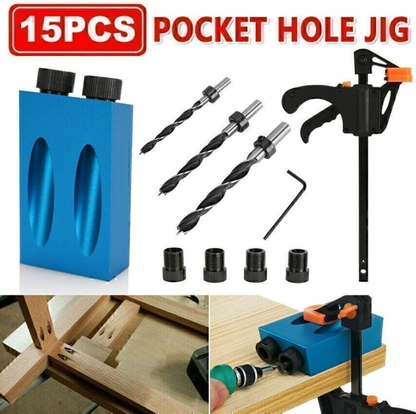 You Might Also Like Waterproof Digital Sports Watch Military Tactical LED Backlight Wristwatch Men 9.56 USD 10.99 USD Free shipping 13% off Black Resin Watch Strap For CASIO Sport Diving Watch Rubber Replacement Band 7.39 USD 8.49 USD Free shipping 13% off Replacement 6 Channel USB Receiver Dongle For Logitech Unifying Keyboard/Mouse 11.56 USD 13.29 USD Free shipping 13% off Replacement USB Receiver Dongle For Logitech M950 M310 M525 M720 Keyboard 8.43 USD 9.69 USD Free shipping 13% off USB Wireless Bluetooth Receiver 3.5mm AUX Audio Stereo Music Home Car Adapter 8.26 USD 9.49 USD Free shipping 13% off 18MM Watchband For Casio W-800H F-91 W-218H Watch Band Replacement Black Strap 7.82 USD 8.99 USD Free shipping 13% off 1 PCS 7S26A Movement Automatic Rotor Oscillating Weight For Seiko NH35 NH36 11.3 USD 12.99 USD Free shipping 13% off 4 Colors For PSP3000 Shell Case Replacement Full Housing Cover With Buttons 20.87 USD Free shipping 12V Digital Thermostat Temperature Control Switch Sensor Module Board 8.87 USD 10.19 USD Free shipping 13% off Touch Screen Pen Stylus Drawing Universal For iPhone iPad Samsung Tablet Phone 8.69 USD 9.99 USD Free shipping 13% off For NZXT Aer RGB InOut Cable Input Cable Connection Cable Case Fan Adapter Cable 7.47 USD 8.59 USD Free shipping 13% off Watch Band Leather Wrist Replacement Strap Quick Release Buckle 14/18/20/22mm 8.0 USD 9.19 USD Free shipping 13% off Product Description If you have any questions, please contact customer service first, do not open disputes easily, thank you! 15Pcs Pocket Hole Jig Kit Specification: Drill Material: Carbon Steel Ring Material: Carbon Steel Positioner Material: Aluminum Main color: Blue + Black Positioner Size: Approx. 67 * 38 * 18 cm Drill diameter: 6 mm, 8 mm, 10 mm Stopper Size: 6mm, 8mm, 10mm Sleeve Size: 6 mm, 8 mm, 10 mm Angle: 15 degrees Quantity: 15 Pcs/Set 57PCS Pocket Hole Jig Kit Feature: HARD TOOLS: The pocket hole drill guide set is an amazing woodworking jig and an exceptionally handy tool collection. ALUMINUM ALLOY: Drill guide is made of high quality aluminum alloy for durability and long service lifetime. EASY TO INSTALL: Come with simple structure, the inclined hole locator is easy to use and install, suitable for jointing wood boards. UNLIMITED APPLICATION: This jig has unlimited application, such as creating flush, fastening picture frames. Package: 1 x Drill guide 3 x Drills 3 x Stoppers 6 x Sleeves 1 x Allen key 1 x F-clip Features: - HARD TOOLS: The pocket hole drill guide set is an amazing woodworking jig and an exceptionally handy tool collection. - ALUMINUM ALLOY: Drill guide is made of high quality aluminum alloy for durability and long service lifetime. - EASY TO INSTALL: Come with simple structure, the inclined hole locator is easy to use and install, suitable for jointing wood boards. - UNLIMITED APPLICATION: This jig has unlimited application, such as creating flush, fastening picture frames. - Easy to use-slant holes are drilled easily and quickly to hide the screws in wooden furniture. DIY woodworking tools and 2-way oblique holes to achieve precise screw connection. Specification: - Product Type: Pocket Hole Jig - Material: Aluminum - Main colour: Blue + Black - Angle: 15 degrees - Quantity: 57Pcs/Set Package Included: - 1pc Pocket hole jig - 2pcs Woodworking Clamps - 1pc Blue Stick - 12pcs Large Screws - 5pcs Limit Rings - 5pcs Drill Bits - 1pc Inner Hexagon - 15pcs Screws - 15pcs Corks About Us We accept all payments authorized by eBay. powered by