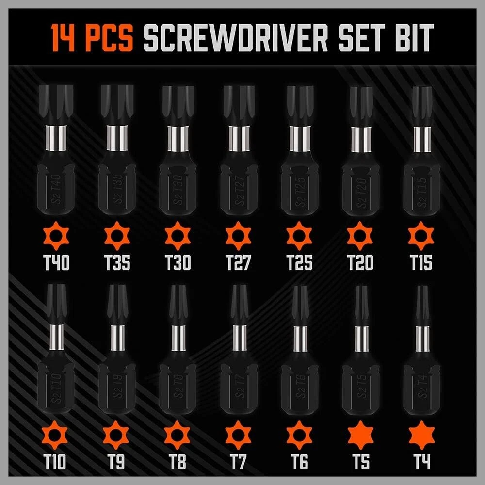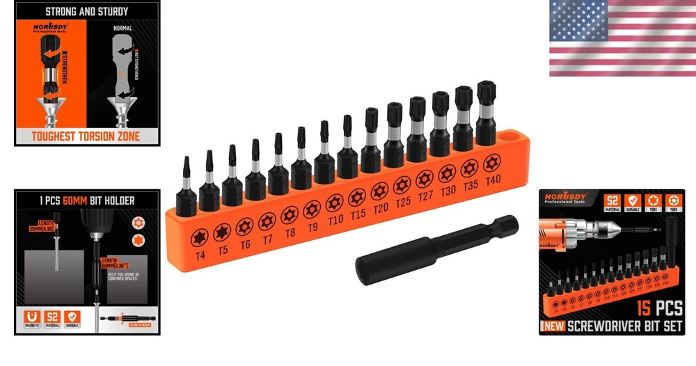 Lightweight 15-Piece Hex Shank Tamper-Resistant Bit Set – Superior Quality ‹ › ‹ › ‹ › ‹ › ‹ › ‹ › ‹ › ‹ › ‹ › Lightweight 15-Piece Hex Shank Tamper-Resistant Bit Set Experience superior quality with our 15-Piece Hex Shank Tamper-Resistant Bit Set, crafted from high-quality S2 steel. This durable set is designed for both professionals and DIY enthusiasts alike, offering the reliability you need for a variety of tasks. Set Includes: 14 pc 1/4-inch shank star bits 1 standard T-5 star bit 1 connector Tamper-Resistant Sizes: T-6, T-7, T-8, T-9, T-10 T-15, T-20, T-25, T-27 T-30, T-35, T-40 (1 inch) Versatile Applications: This set is perfect for a wide range of uses, including: Automobiles and motorcycle repairs Dashboards and interiors Computers and cable boxes Toys and appliances Consumer electronics Designed for Precision: Each bit is engineered to prevent cam-out, ensuring secure fittings and reducing wear on both the bits and the screws. 6-Lobe 1/4" shank hex bits click onto most standard sockets, screwdrivers, drill/driver kits & power tool attachments. The strategically placed hole in the center of each bit enhances tamper resistance, giving you added control and security during use. Why Choose Our Tamper-Resistant Bit Set? Invest in quality with our Lightweight 15-Piece Hex Shank Tamper-Resistant Bit Set. Whether you're a professional mechanic or a DIY home repair enthusiast, this set will meet all your tamper-resistant needs with durability, precision, and versatility. Don't settle for less—experience the difference today! Shipping Free & Fast Shipping - We offer free shipping to most of the USA with a normal delivery time of 3-7 days. However, due to the current situation, additional delivery time (up to 3 weeks) may be required for some items. Alternative Carriers - We may use alternative carriers (e.g. USPS, FedEx, UPS, etc.) to ensure your package arrives safely and on time. Due to the use of multiple carriers, we are unable to provide a tracking number automatically. Handling Time - Orders are processed and shipped within 1-2 business days of receiving cleared payment. Shipping Restrictions - Shipping to Alaska, Hawaii, Puerto Rico, Guam, and other US territories may incur shipping charges or delivery restrictions. Please contact us before ordering, or your order can be refunded/cancelled. State Restrictions - There may be restrictions based on your state of purchase. For example, certain items may not be shipped to California due to state regulations. Contact for Tracking Updates - If you require tracking updates or have any concerns about the delivery of your order, please feel free to contact us, and we will be happy to assist you. Return 30-Day Hassle-Free Returns - We want you to be completely satisfied with your purchase. If you are not, you can return the item within 30 days of receiving it for a full refund or exchange. Easy Return Process - To start a return, simply contact us and we will provide you with a prepaid return shipping label and detailed instructions. Restocking Fee - There are no restocking fees for returns. However, the buyer is responsible for return shipping costs if the return is not due to a seller's error. Refund Processing Time - Refunds will be processed within 5 business days of receiving the returned item in its condition. Payment We accept all major credit cards, PayPal, and Apple Pay for your convenience. Your payment information is secure and encrypted to ensure a safe and seamless transaction. Please complete your payment within 3 days of purchase to avoid any delays in shipping. Feedback Your feedback is extremely important to us. We strive to provide the best products and customer service possible. If you are satisfied with your purchase, please take a moment to leave us a positive review. If you have any concerns or issues with your order, please contact us before leaving negative feedback. We are committed to resolving any problems and ensuring your satisfaction. Contact Us If you have any questions or concerns, please feel free to out to our customer support team. You can contact us through the eBay messaging system. We are available Monday to Friday, 9:00 am to 5:00 pm EST, and we will do our best to respond to your inquiry within 24 hours. Buy it now and enjoy a pleasant shopping experience! Model: Impact Torx Bit Set Item Height: Impact Torx Bit Set Item Depth: 0.7 inches Unit Quantity: 4 ounces Suitable For: Drill,Automobiles,Repairs,Trucks,Engines,Motorcycles,Interiors,Dashboards,Computers,Cable Boxes,Toys,Appliances,Consumer Electronics Type: Bit Set,Impact Torx Bit Set,Tamper-Proof Star Bit Set,Star Drive Bits Application: Repairing,Automotive Repairs,Consumer Electronics Repairs Number of Items in Set: 15 Package Quantity: 1 Material: S2 Alloy Steel Color: Silver Item Diameter: 7.3 x 3.9 inches Item Weight: 4 ounces Unit Type: oz