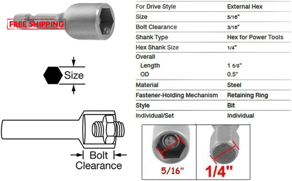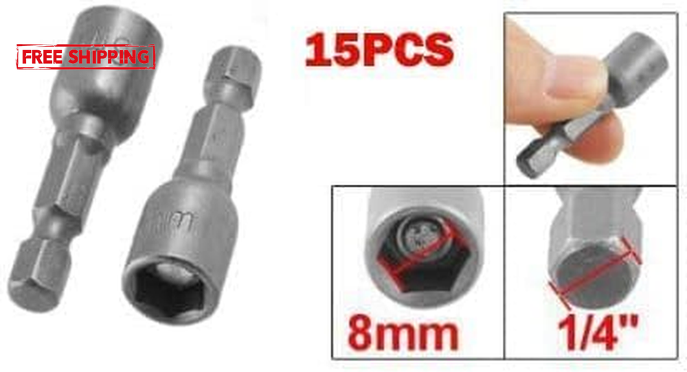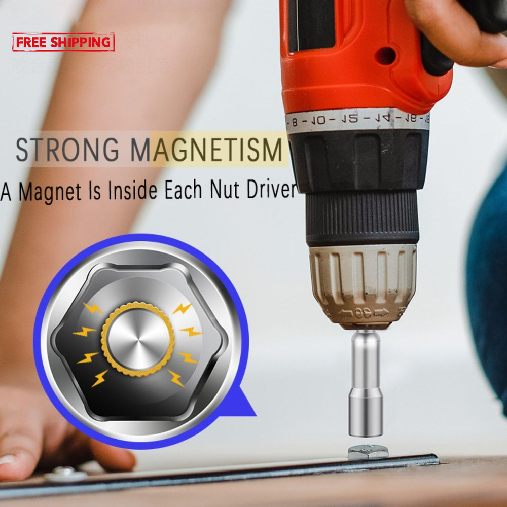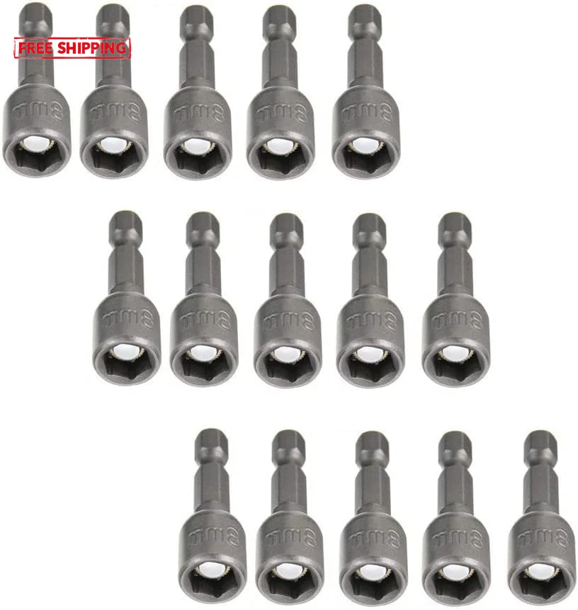 [Material]Chrome-Vanadium,Constructed from forged and quenched chrome vanadium steel with a corrosion-resistant sandblasted finish, high hardness and durable to use. [Strong Magnetic] Magnetic nut setter can be be used with an impact/bit driver or hex socket ratchet to securely grab nuts and fasteners for easy installation or loosening/removal. [Application]Widely used in home DIY, carpentry, auto parts, specializing in machine repair and so on. [Excellent Compatibility] Universal 1/4 inch Hex Shanks fit a variety of quick-change chucks and drill, driver, or screwgun. [Easy to Use]The nut driver contains strong magnetism and is very easy to be installed and dismantled, not easy to fall off when it's using. RUIAN impact ready 5/16" nutsetter Magnetically designed to securely grip hex nuts and fasteners for easy installation or loosening/removal, use in Impact Drivers and Wrenches. Material: Chrome Vanadium Steel Head Style: โHex Hex-Shank Diameter: 1/4"(6.35mm) Size:5/16''(8mm) Hex Strong Magnetic Power Package:Metric Magnetic Nut Driver Set 15Pcs