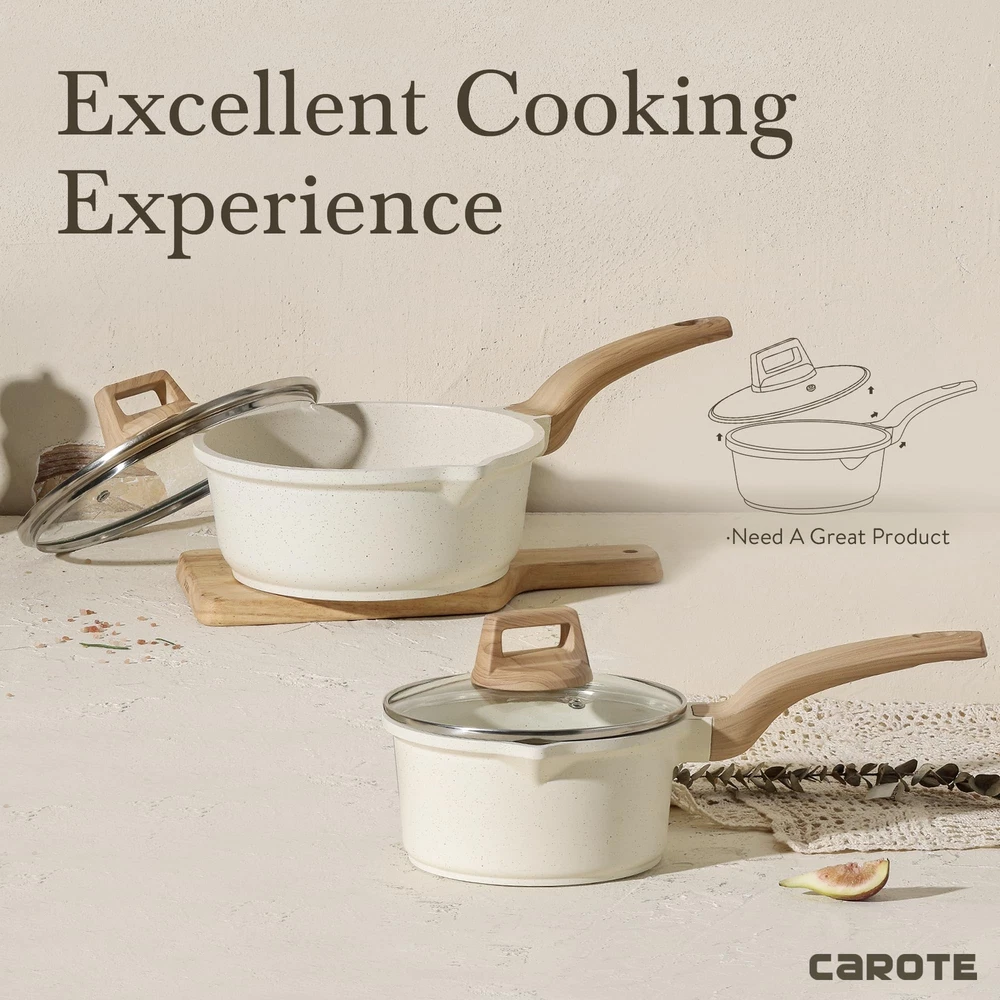 [Super Easy to Clean] - Our saucepan features a non-stick coating that allows for easy and quick cleaning. Simply wipe off residues and it is ready to use again. The rivetless design prevents food from getting stuck, making clean-up a breeze. [Even and Fast Heat Distribution] - Thanks to the enlarged stainless steel base, our saucepan ensures rapid and even heat distribution. Enjoy efficient cooking processes without wasting time and energy. Compatible with various stovetops. [5x Long-lasting Nonstick Performance] - Our saucepan, made from advanced 100% PFOA Free and non-toxic natural granite material, offers outstanding non-stick performance, ensuring easy cooking and effortless cleanup. [Perfect Addition for Everyday Cooking] - The wooden grip and white cream color add elegance to your home decor and is ergonomically designed for comfort. Introducing our innovative pouring spout design, making it easier than ever to pour oil or sauce with precision. Whether making oatmeal, soups, sauces, or gravies, this lightweight saucepan has got you covered. [Service & Guarantee] - At , we prioritize quality and customer satisfaction. Each piece of our cookware goes through rigorous inspection to ensure high quality. If you receive any defective items due to delivery, please reach out to us for a 100% refund or a new replacement product. Excellent service guaranteed.