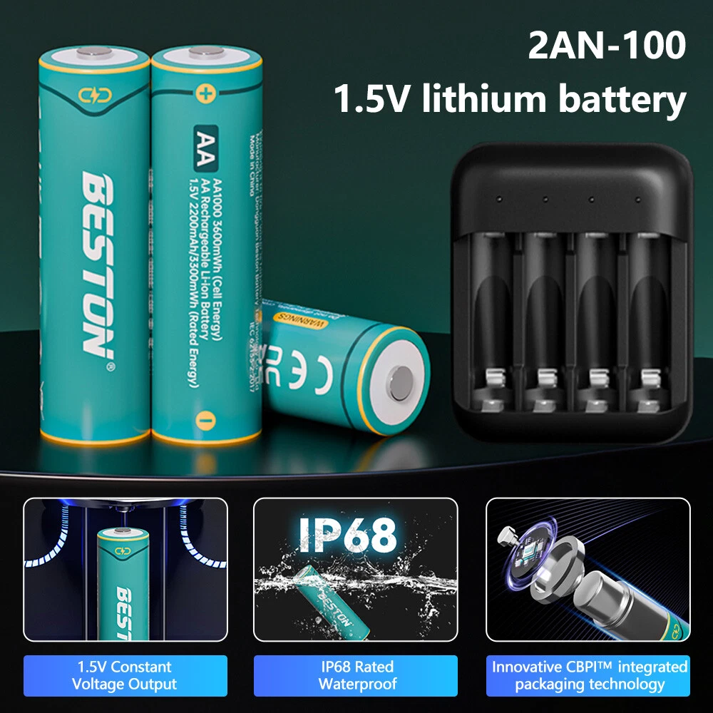 1.5V AA Lithium Rechargeable Batteries 3600mWh Double A Battery /Charger Lot