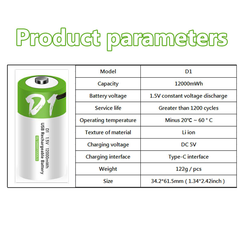 Store Categories Store Categories Outdoor Sports Business and industrial Batteries Home and garden Healthy and beauty Toys and doll TOOLS Other 1.5V Fast Charge USB D1 Li-ion Rechargeable Battery Type C Cable 12000mWh Radio Product Description Descr ib tion : SWITCH TO RECHARGEABLE: Stop wasting money on standard alkaline batteries! Switch to our rechargeable lithium batteries for the same great performance. Reuse the batteries repeatedly. Be eco-friendlier and more cost-effective Type C USB CHARGING: Directly plug a Type C USB into the input for quick and easy charging. Use the included cable to connect simultaneously connect 2 batteries to any USB power supply. Connect to an AC adapter, power bank or computer, and fully charge in around 4 hours. Long lifecycle will allow over a 1200 uses LED INDICATORS: When charging, the red LED will blinks and will then LED remains on once it is fully charged. Conveniently see the charging status of each battery LARGE CAPACITY: High capacity provides sufficient power for a wide range of products. Perfect for controller, keyboard, mouse, toys, calculator, toothbrush and much more Featur es : Great performance,a good replace to alkaline c batteries,1.5V constant output,the same usage time as alkaline c batteries. Fast charging ,Type C USB charging fast fully charge in around 4 hours. Easy charging,connect type C cable to the batteries and suitable USB power source(such as mobile phone adapter,laptop,power bank or car charger).Two batteries can be charged at the same time. Packag e includ e : D1 Batteries (Come with storage box and data cable) (The number of batteries depends on your order option) Note : Due to the light and screen setting difference, the item's real color may has slight difference. Please allow slight dimension difference due to different manual measurement. The charging time and usage time of batteries may vary in different environments Thank you for your kindly understanding. Payment Policy Delivery details Terms of sales About us Contact us Payment Policy 1. We accept PayPal only. 2. All major credit cards are accepted through secure payment processor PayPal. 3. Payment must be received within 7 business days of auction closing. 4. If you have bought multiple items from me, you can send me one payment for all the items instead of paying for them individually. When you click the Pay Now button, eBay will automatically determine if there are other items you have won or purchased from me and will combine them for your review. 5. NOTE: Import duties, taxes and chargers are not included in the item price or shipping charges. These charges are the buyer's responsibility. Please check with your country's customs office to determine what these additional costs will be prior to bidding buying. Delivery details 1. We Ship to Worldwide. 2. Items will be shipped within 7-14 business day on payment received. 3. Item are shipped from Shenzhen using Airmail, reach most of the countries within 10 to 35. 4. Delivery time depends on destination and other factors, it may takes up to 40 business days. 5. We are not responsible for undeliverable address, we reserve the right to charge the shipping fee again for returned items due to wrong address. 6. If you do not receive your item by 30 business days, Please feel free to contact us via ebay mail system, we will try our best to resolve any problems with you. Terms of sales 1. You have 7 day to contact us and 10 days to return it from the date it was received. If this item is in your possession more than 7 days, it is considered used and WE WILL NOT ISSUE YOU A REFUND OR REPLACEMENT.There are NO EXCEPTIONS! 2. All Returned items Must Be in the original packaging and you MUST PROVIDE us with the shipping tracking number, specific reason for the return,and your ebay ID. 3. We will refund YOUR FULL WINNING BID AMOUNT, upon receipt of the item in its original condition and packaging with all components and accessories included, AFTER BOTH Buyer and Seller cancel the transaction form ebay.OR, you may choose to have a replacement. 4. Return shipping is to be paid by the Buyer. About us 1. We strive for our customer satisfaction at best possible. If you have any questions, please feel free to email our service specialists 24 Hours a Day, 7 Days a week. We will reply you ASAP. If no response within 24 Hours, please check the spam in your mail box. 2. We greatly appreciate your POSITIVE feedback. Please do NOT leave negative feedback without asking for help. Our aim is to provide Top Level Customer Service, normally so we will try our best to solve any problem you have. 3. Please DON'T leave negative or neutral feedback if you haven't received item in 30 days, because we have mentioned the shipping time repeatedly. Contact us Our customer-oriented service strives for positive feedbacks with all 5 star selling ratings . Please feel free to contact us via eBay message once you have any question before you giving us negative feedback or open case. Business time: GMT8 (9:00-18:00) from Monday to Friday Copyright © 2021 Dianxiaomi