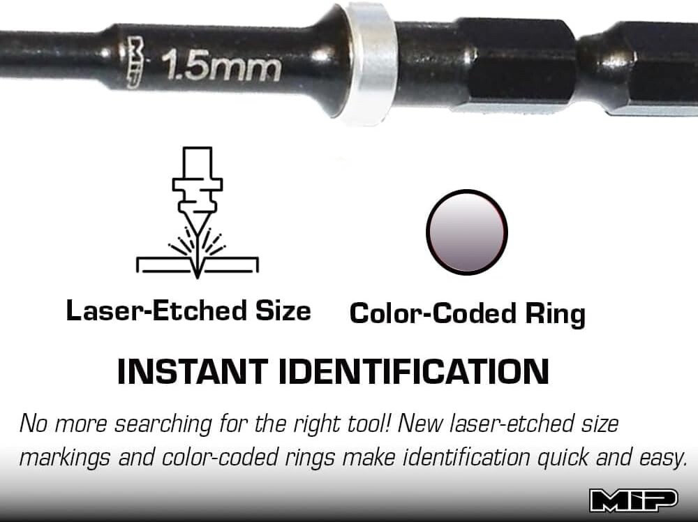 TIME-SAVING EFFICIENCY: Use the MIP Nut Driver Speed Tip system with your cordless screwdriver to quickly tackle stubborn nuts, eliminating manual labor and reducing hand fatigue for faster, more efficient maintenance on any project. COMPACT & PORTABLE: Lightweight and easy to carry, the MIP Nut Driver Speed Tip ensures you're always prepared for any task—whether you're working on RC cars, automotive repairs, or DIY projects. BUILT TO LAST: Made from durable, hardened steel, the Speed Tip stands up to demanding tasks, providing long-lasting performance and reliability across a range of applications. QUICK & EASY IDENTIFICATION: Laser-etched size markings allow for easy, fast identification, ensuring you always have the right tool on hand without wasting time searching through your toolbox. VERSATILE & MULTI-PURPOSE: While ideal for RC car maintenance, the MIP Nut Driver Speed Tip system is perfect for a wide variety of tasks, from automotive repairs to general DIY projects, making it an essential tool for any toolbox. MUST-HAVE FOR ENTHUSIASTS & DIYERS: Whether you're into RC cars, working on cars, or tackling home repairs, the MIP Nut Driver Speed Tip system streamlines maintenance tasks, making it a valuable addition to your toolkit.