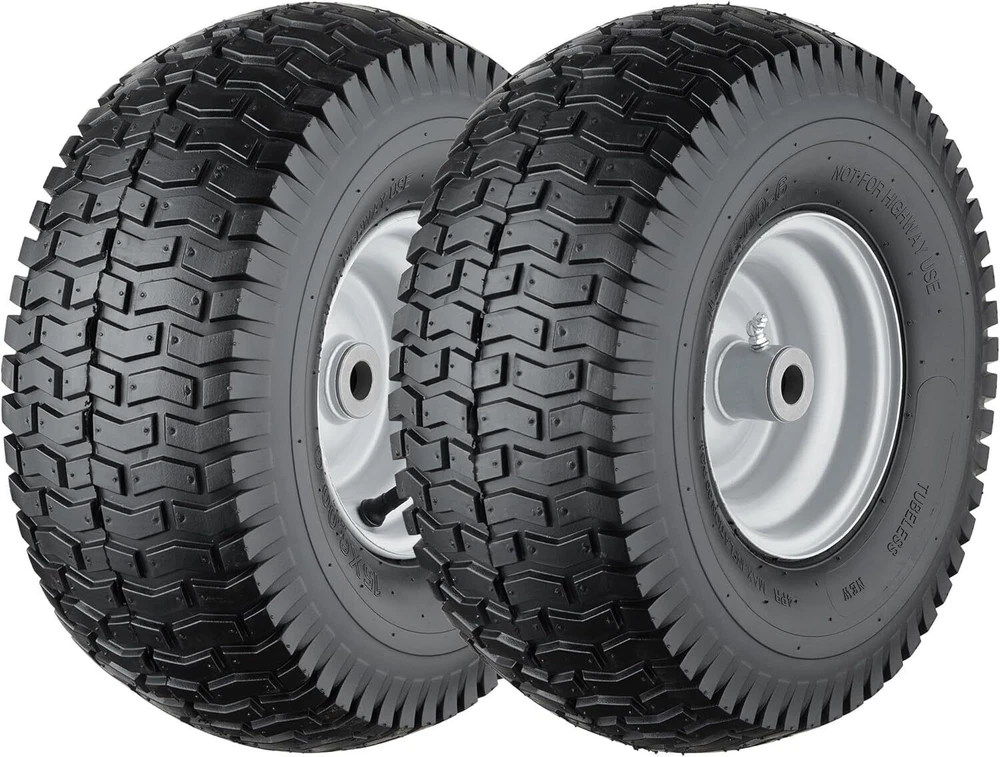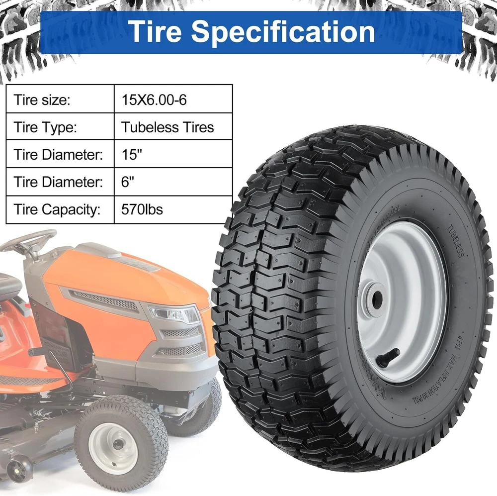 15.7" Square Iron Bonfire Pit Outdoor Camping Wood Burning Fire Pit 50.98 USD 54.23 USD Free shipping 6% off 26"Fire Pit Bowl Wood Burning Portable Outdoor Firepit Fireplace Camping Bonfire 157.03 USD 167.05 USD Free shipping 6% off 24"Round Fire Pit Grate w/10 Bars for Firepit Firewood Log Burning Rack Holder 58.04 USD 61.74 USD Free shipping 6% off 6-in-1 Hand Immersion Blender 1000W 12-Speed Handheld Blender with 600ml Beaker 50.98 USD 54.23 USD Free shipping 6% off 30" Backyards Fire Pit Poker Steel Firepit Tool with Built-in Bottle Opener NEW 49.54 USD 52.7 USD Free shipping 6% off 2-in-1 Portable Fire Pit with Pot Bracket & Carry Bag 8" Mini Tabletop Fireplace 48.87 USD 51.99 USD Free shipping 6% off Rustproof Shower Corner Caddy Organizer 4 Adjustable Shelves Tension Pole Holder 73.31 USD 77.99 USD Free shipping 6% off Tension Pole Shower Caddy 4 Basket Shelves Built-in Towel Bar Adjustable 60-97" 46.3 USD 49.26 USD Free shipping 6% off Electric Coffee Percolator 12 Cups Quick Brew Stainless Steel Easy Pour New 66.64 USD 70.89 USD Free shipping 6% off Set of 30 Clear Glass Bud Vases Thick Strong Wedding Centerpieces Decor New 48.77 USD 51.88 USD Free shipping 6% off Electric Lunch Box 80W Fast Heating Portable Food Warmer Dual Containers Travel 48.87 USD 51.99 USD Free shipping 6% off 54PCS Magnetic Nut Driver Set Impact Drill Driver Bit 1/4" Metric&SAE Nut Driver 48.87 USD 51.99 USD Free shipping 6% off About this item 【Premium Lawn Mower Tires 15x6.00 6】Tire diameter: 15”, Tire width:6”, Rim diameter: 6”,Hub. Offset:3.5”, Bore ID:3/4”. Tire type:4 Ply Tubeless, Max. load capacity: 570 lbs(258 KG), Not for highway use. 【High quality material】Our 15x6.00-6nhs lawn mower tires are made of all-season natural rubber and the rims are made of high-quality steel. 4 Ply tubeless pneumatic tires would provide good shock absorption and bring comfortable and stable driving experience. 【Widely Applicable】15x6x6 rid ing lawn mower tires with wheels are compatible with 100 and 300 series lawn mowers with front size 15x6.00-6”, which are most popular replacements for many kind of lawn mower, riding lawn mower, lawn tractor, garden tractor and more. 【Kindly Note】 Please check your existing tire size, hub length, bearing or bushing diameter to ensure proper replacement fit. Grease must be pumped in to ensure lubrication. NOT for highway use and static load-bearing. Dehydrated and Freeze-Dried Fruit Variety Pail Emergency Supply Survival Food 111.82 USD 118.96 USD Free shipping 6% off 12PC Metric Flex-Head Ratcheting Wrench Set 8-19 mm Ratchet Combination Wrenches 46.43 USD 49.39 USD Free shipping 6% off Heavy Duty 5 Tier Plastic Storage Shelf Home Garage Shelving Unit Shelves Rack 57.81 USD 61.5 USD Free shipping 6% off 1 Person Emergency Food Supply Kit 42 Serving Storage Quick Meal Survival Bucket 39.68 USD 42.21 USD Free shipping 6% off 24 In Smart TV HD 720P Resolution LED Display 60 Hz Refresh Rate W/Stand Class 107.82 USD 114.7 USD Free shipping 6% off Portable Baby Simple Highchair Folding High Chair Baby Chair w/Adjustable Tray 72.82 USD 77.47 USD Free shipping 6% off 8 Sheet Microcut Shredder w/Pullout Basket for Home Office Credit Card Shredder 99.08 USD 105.4 USD Free shipping 6% off 7-Piece King Size Reversible Blue Stripe Bed In a Bag Comforter Set with Sheets 58.22 USD 61.94 USD Free shipping 6% off Set of 6 File Crate Plastic Milk Storage Bins Basket Stackable Boxes Black NEW 43.45 USD 46.22 USD Free shipping 6% off 5-Shelf Wood Bookcase Storage Shelving Adjustable Framed Shelves Canyon Walnut 68.3 USD 72.66 USD Free shipping 6% off Portable Outdoor Propane Heater for Golf Cart with Gas Tank Stand Holder 6200BTU 67.2 USD 71.49 USD Free shipping 6% off Angle Head F1807 PEX Pipe Crimping Tool for Copper Rings 1" Angle Single Crimper 85.5 USD 90.96 USD Free shipping 6% off