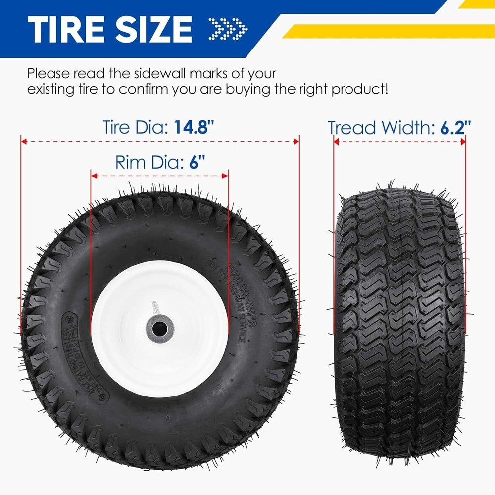 Weatherproof Dog House Hinged Roof Adjustable Legs Raised Floor House Porch NEW 228.11 USD 273.74 USD Free shipping 17% off 6" Wheels Aluminum Rollator Walker Folding Removable Back Support Padded Seat 92.98 USD 99.98 USD Free shipping 7% off Foldable Lightweight 2-Button Walker 5" Wheels Adjustable Walker w/Ski Glides 67.46 USD Free shipping Folding Walkers Seniors 5" Front Wheels Width Adjustable Compact Standard Walker 60.34 USD 64.88 USD Free shipping 7% off Heavy Duty Garden Hose 75ft Kink Free Rubber W/ 3/4 Connectors All Weather New 60.34 USD 64.88 USD Free shipping 7% off Rechargeable 4V Cordless Screwdriver with Circuit Sensor Technology 45pcs Bits 48.25 USD 51.88 USD Free shipping 7% off Cordless Electric Scissors 4V Rechargeable Cardboard Box Cutter Fabric Scissor 48.25 USD 51.88 USD Free shipping 7% off 15 Piece Combination Wrench Set SAE 12 Point CR-V Steel W/ Rolling Pouch New 48.25 USD 51.88 USD Free shipping 7% off 14-Piece Premium Combination Wrench Set SAE 1/4"-15/16" 12-Point With Tool Roll 43.11 USD 46.36 USD Free shipping 7% off 48PC Cr-V Steel Ratcheting Wrench Set SAE 1/4-3/4"72 Teeth Ratchet Wrench 6-18mm 60.34 USD 64.88 USD Free shipping 7% off 8 Pc 12 Pt Reversible Ratcheting Combination Wrench Set Metric Precision Tools 67.72 USD 72.82 USD Free shipping 7% off 16 Piece Jumbo Combination Wrench Set SAE 1/4"-1-1/4" Raised Panel Construction 71.46 USD Free shipping About this item Compatible with: for John Deere 100 and 300 Series Riding Mowers Specifications: Tire Diameter: 14.8"; Tire Section Width: 6.2"; Rim Diameter: 6"; Hub Length: 3"; Bushing Size: 3/4"; Tire Type: Pneumatic 4pr Tubeless Turf Tire Better Performance: The pneumatic mower tires are designed with unique patterns, which can help to increase the friction between the tire and the ground, reduce tire noise, and improve the vehicle's handling performance. High Quality: All mower tires are made with premium rubber material in exquisite workmanship, ensures ultra quality and reliability. Note: 570 LBS load capacity and Not for highw ay use. Please check the size of the original tire on your vehicle to ensure the size of the tire to be purchased is correct. 12PC Metric Flex-Head Ratcheting Wrench Set 8-19 mm Ratchet Combination Wrenches 48.25 USD 51.88 USD Free shipping 7% off Dehydrated and Freeze-Dried Fruit Variety Pail Emergency Supply Survival Food 95.94 USD 115.01 USD Free shipping 17% off Heavy Duty 5 Tier Plastic Storage Shelf Home Garage Shelving Unit Shelves Rack 46.04 USD 49.5 USD Free shipping 7% off 1 Person Emergency Food Supply Kit 42 Serving Storage Quick Meal Survival Bucket 31.26 USD 33.61 USD Free shipping 7% off 24 In Smart TV HD 720P Resolution LED Display 60 Hz Refresh Rate W/Stand Class 92.5 USD 110.88 USD Free shipping 17% off Ergonomic Office Chair Video Gaming Chairs Massage PU Leather Computer Chair 126.81 USD 136.36 USD Free shipping 7% off 8 Sheet Microcut Shredder w/Pullout Basket for Home Office Credit Card Shredder 91.06 USD 109.28 USD Free shipping 17% off Portable Baby Simple Highchair Folding High Chair Baby Chair w/Adjustable Tray 46.37 USD 49.86 USD Free shipping 7% off 4 Pack Aluminum Corner Clamp for Woodworking 90 Degree Clamp Right Angle Clamp 51.88 USD 55.78 USD Free shipping 7% off 3/8" Drive Impact Socket Set 48-Piece SAE/Metric Deep/Shallow Sockets Cr-V Steel 42.82 USD 46.04 USD Free shipping 7% off 6-Cube Storage Organizer 3-Tier Bookcase Display Shelf for Home Office White US 33.48 USD 36.0 USD Free shipping 7% off Set of 6 File Crate Plastic Milk Storage Bins Basket Stackable Boxes Black NEW 67.38 USD 80.93 USD Free shipping 17% off