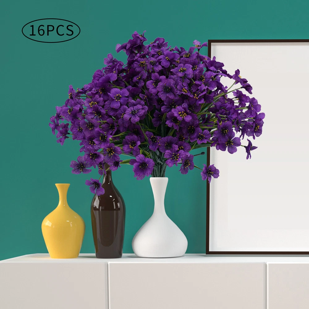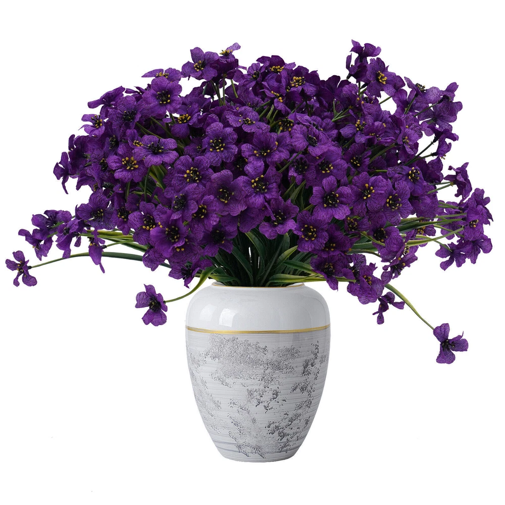 Specification Material: Silk Fabric, Plastic Color: Purple Number of Pieces: 16 Specific Uses For Product: Party Decor, Wedding Decor, Home Decor Gross Weight: 0.32kg/0.7lbs Package Size: 25x40x8cm/9.84x15.74x3.14in Single Plant Height: 32cm/12.6in Package Included 16x Artificial Flowers Have a nice day~ Description If you want to add a little vibrancy to your living room or balcony, then this realistic, beautiful, and pure artificial flower will be a good choice for you. Its free stretching posture and irregular texture feel make it realistic and beautiful. Whether it's a romantic wedding or a warm family gathering, it will create a beautiful and pleasant atmosphere for you. Specification Material: Silk Fabric, Plastic Color: Purple Number of Pieces: 16 Specific Uses For Product: Party Decor, Wedding Decor, Home Decor Gross Weight: 0.32kg/0.7lbs Package Size: 25x40x8cm/9.84x15.74x3.14in Single Plant Height: 32cm/12.6in Package Included 16x Artificial Flowers Key Features Realistic and Beautiful : The artificial flower's bright green textured branches show the same vitality as real flowers. The purple petals are dynamic and natural, bringing you a happy mood. High-quality Materials : Artificial flowers are made of high-quality silk fabric and plastic, which is very strong, and not easily deformed. The soft silk fabric gives you a comfortable touch. Romantic Decorations : Fresh and natural artificial flowers present a free stretching posture. Beautiful and romantic artificial flowers add vitality and greenery to your bedroom, kitchen, and living room. Hair Accessories : Realistic and beautiful artificial flowers are ideal for hair accessories. Purple flowers and unique braids can create the look of a flower fairy, which is great for parties or photo shoots. Wedding Decorations : Purple artificial flowers represent romance and passion, which makes them great for wedding decorations or making bouquets. Romantic and beautiful artificial flowers give a warm and romantic atmosphere to a wedding. Easy to Maintain : Compared to real flowers, artificial flowers do not need to be watered and trimmed. If they get dirty, you just need to rinse them with water and dry them naturally, which saves a lot of time and effort. DIY Fun : Artificial flowers are great for pairing with large flowers like roses, sunflowers, and lilies to create layered, colorful bouquets. This not only allows you to reap the benefits of a beautiful bouquet but also to experience the joy of floral art. Non-allergenic : Compared to flowers, artificial flowers are safer and more harmless, avoiding possible allergies caused by pollen, which allows everyone to experience the beauty of flowers. Details Detachable Flower Heads : The removable flower heads are more convenient to decorate according to demand. Realistic Leaves : The leaves show a floating form and natural green color to make them look more realistic and vivid. Realistic Petals : The petals are made of soft silk fabric, which makes the petals more realistic and vivid. Application These artificial flowers are very suitable for daily home garden decoration, birthdays, holidays, weddings, memorial places, DIY projects, etc. Notes 1. It May occur during transportation, flowers and leaves fall off, and other common phenomena. You can insert the flowers and leaves. You can also fix them with hot melt adhesive. 2. Please do not expose the flowers to sunlight for a long time, the color will fade. 3. You can wash it with water, and then just wipe it with a rag. Blow dry with a low-temperature hair dryer. 4. Please allow the slight color difference caused by the shooting light and 1-3cm error due to manual measurement. Please make sure you do not mind before you order. Payment Delivery details Terms of sales About us Contact us Payment We accept ebay payment 。 Fees such as import duties, taxes are not included in the item price or shipping costs. These charges are the buyer's responsibility. Delivery details Shipping: 2-9 working days to: USA Terms of sales We maintain high standards of excellence and strive for hundred percent customer satisfaction. Feedback is very important to us. We hope that you contact us immediately before you give neutral or negative feedback, so that we can address your concerns. It is impossible to address issues if we do not know about them! About us Your satis faction is our ultimate goal. We work hard to earn your trust and future business. Our certified technicians have tested each item before shipping. The unit comes with 1 year limited warranty on all manufacturing defects. a) If you receive a defective item, you may return it or ask for a discount. Please contact us within 14 days after you receive the package. b) What you returned must be intact and in its original packaging as re? u. Customer is responsible for shipping costs of the returned item. c) We will cover the cost of shipping back t with the shipping rate indicated in the registration page. We will send you a new unit or refund the full payment you paid. Thank you. Contact us Business Hour Business Hour: Monday To Friday: 8:30 AM to 5:00 PM (Beijing China time) Due to time zones, our reply to your questions may not be immediately. But within above working time, we will reply your email within 24 hours. If it's non-workdays, please kindly be patient and wait till Monday. Please contact us with ebay message. Please feel free to contact us if you have any questions. Monday To Friday: 8:30 AM to 5:00 PM (Beijing China time) Due to time zones, our reply to your questions may not be immediately. But within above working time, we will reply your email within 24 hours. If it's non-workdays, please kindly be patient and wait till Monday. Please contact us with ebay message. Please feel free to contact us if you have any questions. On Jan 6, 2025 at 18:28:15 PST, seller added the following information: