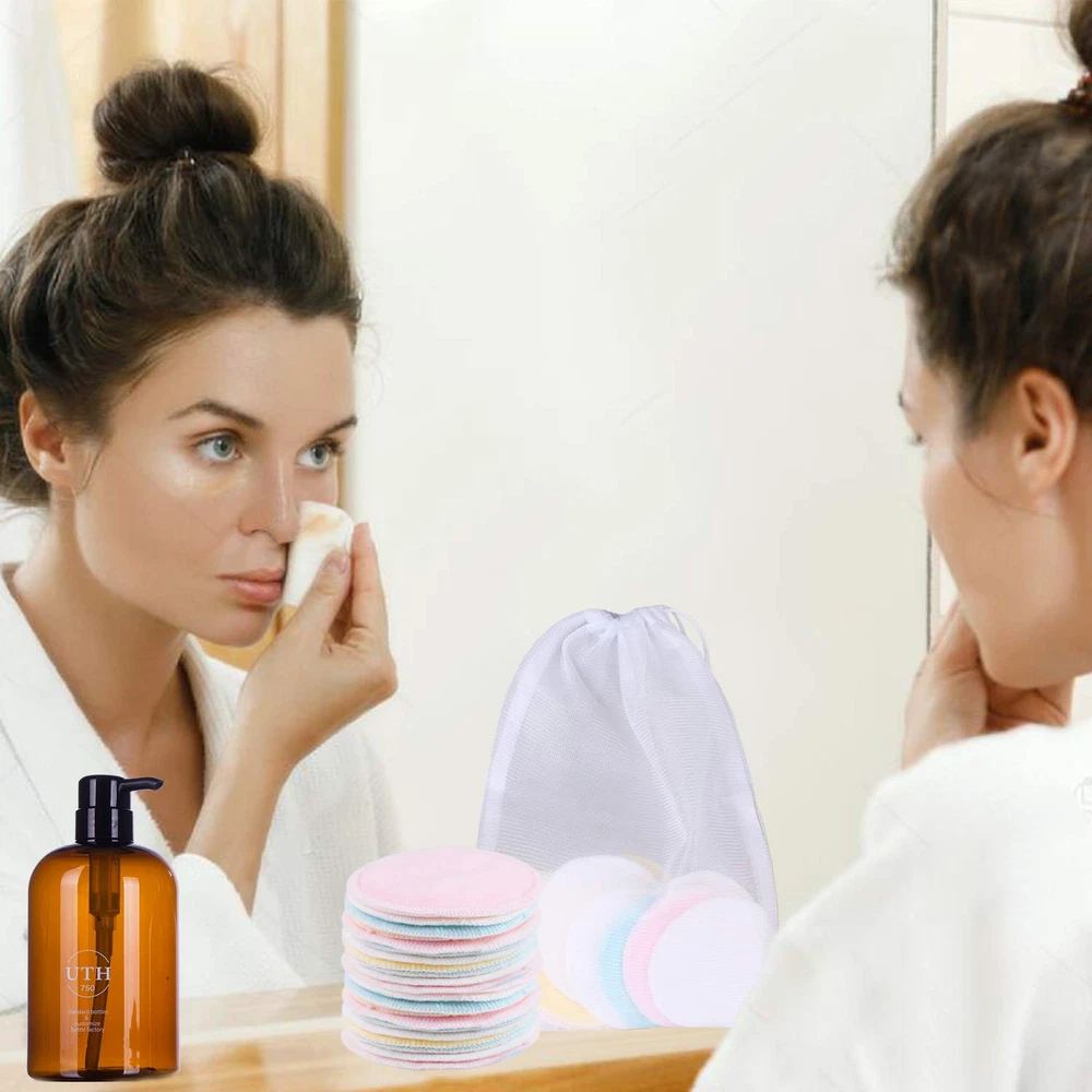 Natural Organic Material: Our Eco-Friendly Reusable Makeup Remover Pads are crafted from a blend of 50% bamboo and 50% cotton, featuring a dual-layer design. These pads are suitable for all skin types, including dry, oily, and sensitive skin. They gently and effectively remove waterproof makeup, leaving your skin feeling smooth, soft, and refreshed. Ideal for women, men, and even babies, these versatile pads are a must-have in every beauty routine. Cost-effective and Sustainable: The 16-pack of reusable makeup remover pads comes in four vibrant colors, accompanied by two laundry bags (one for washing and one for storage). Designed for durability, these pads can be used up to 1000 times, promoting a zero-waste lifestyle. Measuring approximately 3.35 inches in diameter, they are portable and easy to incorporate into your daily skincare regimen. Effective Cleaning: To use, simply wet the pad with warm water and gently massage in a circular motion to remove makeup. Flip the pad as needed until all traces of makeup are gone. These soft pads penetrate deep into your pores, effectively removing makeup, sunscreen, and other impurities, making them perfect for cleaning eye makeup, mascara, and lipstick. Eco-friendly Choice: Made from sustainable bamboo fiber, these reusable cotton pads help reduce single-use plastics and waste in our oceans and landfills. After each use, rinse the pads with water to maintain their cleanliness, and for a deeper clean, simply toss them in the washing machine using the included laundry bag. Customer Support: Our dedicated after-sales team is here to assist you with any questions or concerns. Reach out to us via email, and we will respond within 24 hours, ensuring you have a satisfactory experience with our product. Product Description Experience a sustainable and effective way to remove your makeup with our Eco-Friendly Reusable Makeup Remover Pads. Designed to promote a zero-waste lifestyle, these pads not only save you money but also contribute to a healthier planet. By choosing reusable products, you set an example for future generations on the importance of environmental stewardship. Made from soft, skin-friendly bamboo, these pads are perfect for removing facial and eye makeup, offering a gentle yet thorough clean without the need for harsh chemicals. Instructions for use are simple: wet the pad with warm water or your preferred makeup remover, then gently massage in a circular motion until all makeup is removed. After use, just add a small amount of laundry detergent and wash in the machine. You’ll find that they come out looking as good as new, ready for your next use. With sustainable materials and a commitment to reducing waste, our reusable makeup remover pads are a smart choice for anyone looking to enhance their beauty routine while caring for the environment. Product Features: Made from natural organic materials: 50% bamboo and 50% cotton for a soft touch. Cost-effective: Can be reused up to 1000 times, significantly reducing waste. Effective makeup removal: Designed to clean deep into pores, removing all types of makeup. Eco-friendly: Helps eliminate single-use plastics from your beauty routine. Comes with laundry bags for easy cleaning and storage, ensuring pads are not lost in the wash.