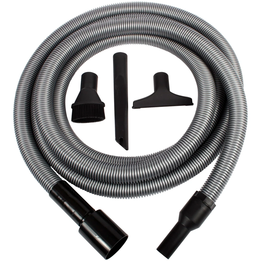 Designed to fit directly into popular hose vacuums with a 2.25" diameter inlet or by utilizing the adaptor act as an extension hose connecting the provided hose to the working end of common home vacuum hose s described as 2.50". These hoses can connect directly into traditional home vacuums and be used to provide a longer hose for cleaning cars, workstations, and other cleaning tasks where the hose provided with the vacuum is found to have insufficient length. Designed to fit directly into popular hose vacuums with a 2.25" diameter inlet or by utilizing the adaptor act as an extension hose connecting the provided hose to the working end of common home vacuum hose s described as 2.50" The commercial hose offers a smooth interior optimizing the performance of your vacuum and is highly flexible to aid in tight spaces The package includes an articulating dusting tool which permit the dusting brush to be set at a 90 degree angle or to face straight forward making it ideal for cleaning surfaces like the louvers of a cars ventilation system Compares favorably with the Craftsman CMXZVBE38662 Friction fit over most standard included Vacuum hoses, allowing for increased overall length and flexibility