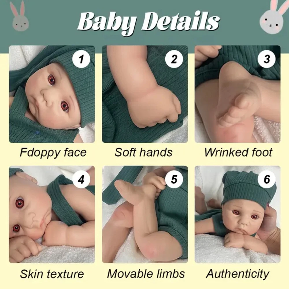 ★ Full body silicone : Our reborn baby doll's is made of Platinum Liquid Full Silicone, she is Solid reborn baby dolls ★ Better than Vinyl material : Medical silicone material is more environmentally friendly than vinyl and safer for your babys. ★ PVC Free, Non-Toxic ★ More real feeling : Our doll's touching feeling is like a real baby than Vinyl dolls ★ Great for Child and Best Choice For Adoption : Let your child feel that he is a playmate and not just a toy. Because it is Weighted Body for a "Real" Baby Feel. ★ The best gift for your child to improve social ability and open up thinking. Children will acquire strong cognitive ability. ★ The best choice for collecting baby dolls . So we think you should choose us, Not only give you the lifelike baby dolls, but also give you more choices. We have different sizes and genders realistic baby dolls. This boy is about 16 inch , ( Anatomically Corre ct), Net weight is :5 lb NOTE: Baby clothes are shooting propsThe doll costume is a product shooting prop, not a gift, package not included the picture clothes, you need to dress up the baby by yourself.