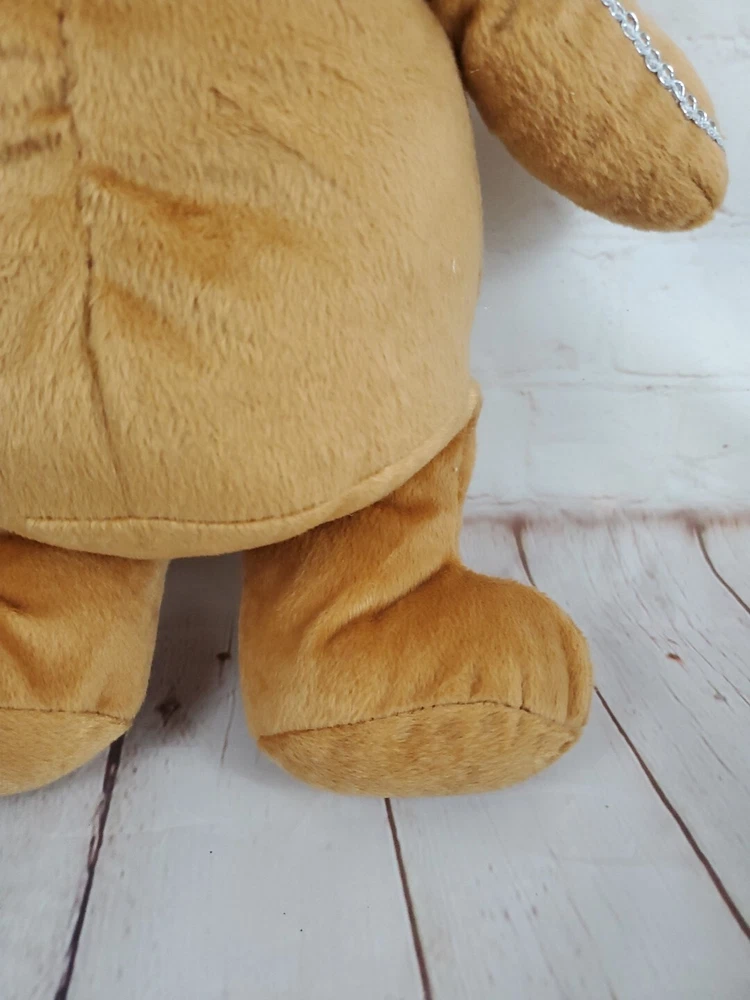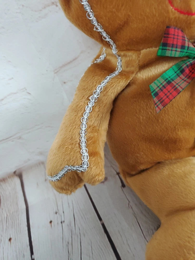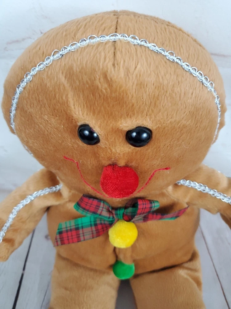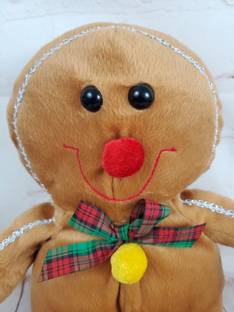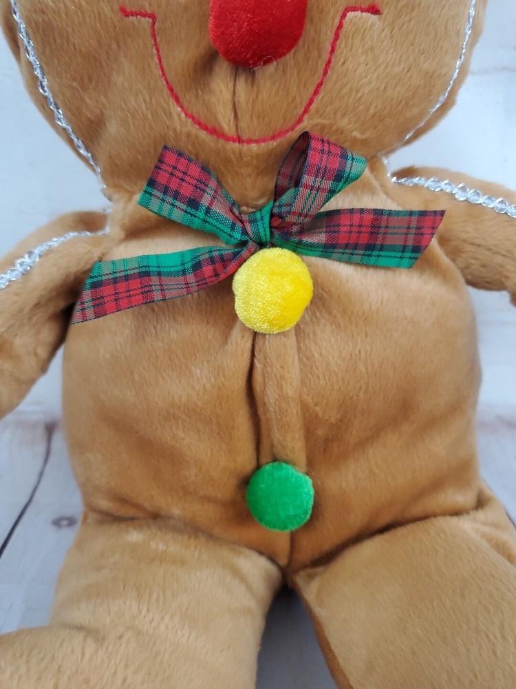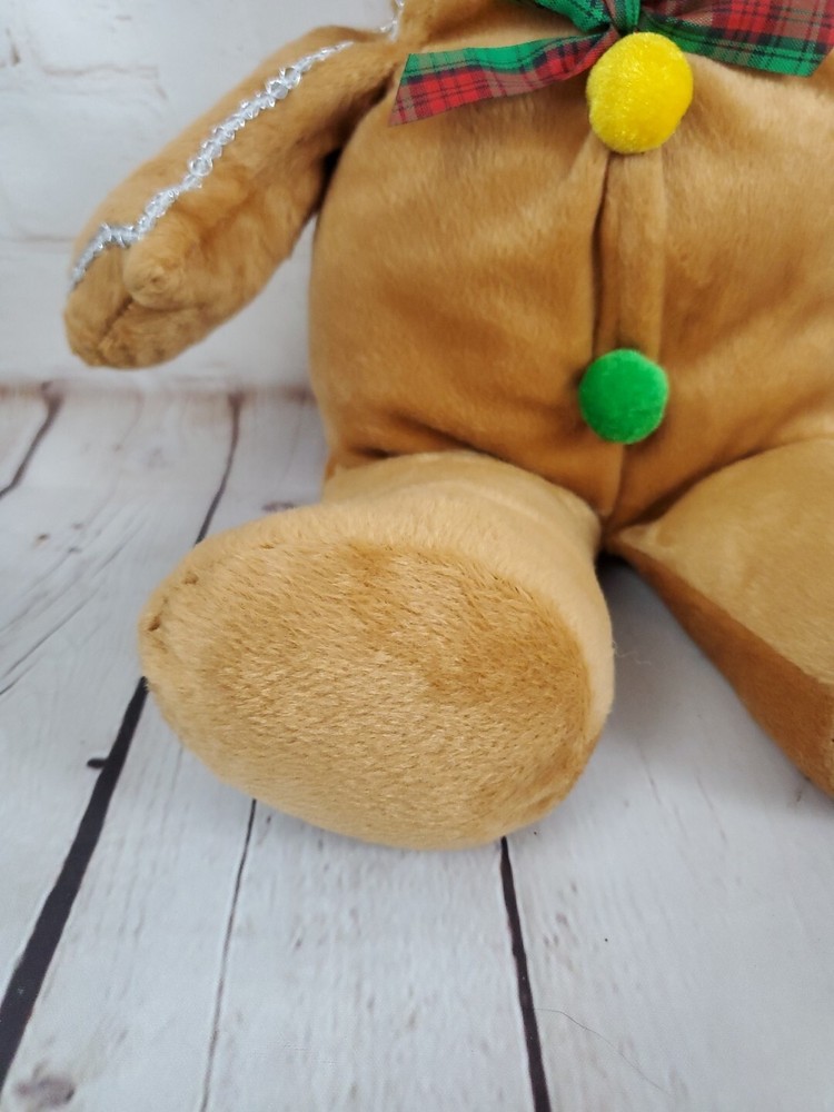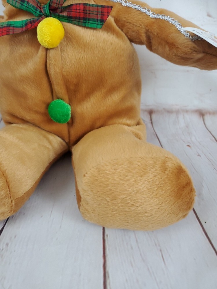 This item is new with tags. This item is in excellent condition with no rips, tears or stains. The item is clean and from a smoke-free seller. This charming 16" plush stuffed animal is perfect for the holiday season. With its cute brown color and delightful design, it's sure to be a hit with kids and adults alike. Made to look like a gingerbread man, this toy is perfect for Christmas decorating or as a gift. The medium size of this stuffed animal makes it easy to carry around and play with. It's made with high-quality materials to ensure that it will last for years to come. Whether you're looking for a special addition to your stuffed animal collection or a unique gift for someone else, this gingerbread man plush is sure to bring a smile to your face.