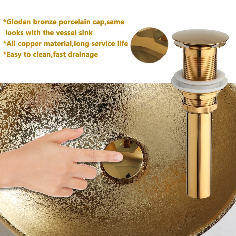 16 Inch Gold Ceramic Vessel Sink Faucet Set with Drain for Bathroom