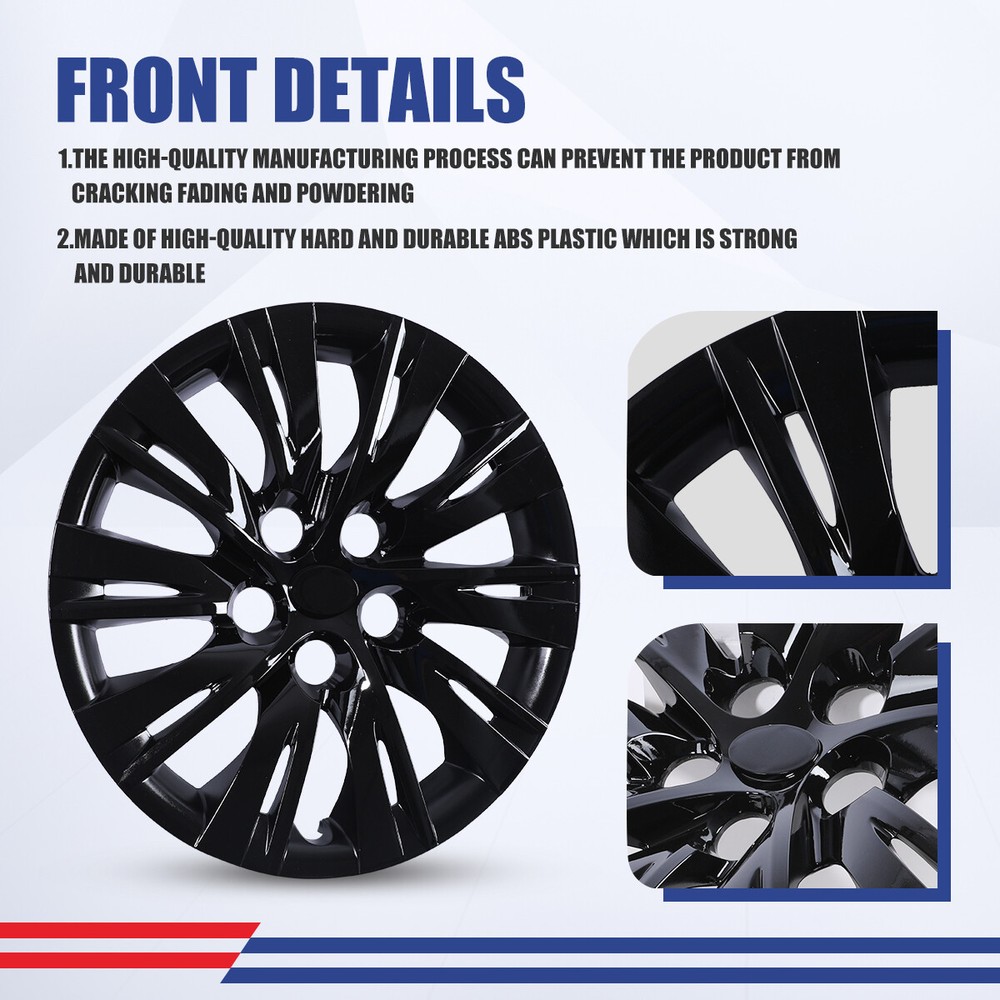 Fitment: for 2012 2013 2014 Toyota Camry 16'' Hubcaps Wheel Rim Cover Description: This set of 4 wheel covers is perfectly designed to fit your 16 inch Tire Size for 2012 2013 2014 Toyota Camry ...and easily installs over your existing factory steel wheels in minutes! These wheel covers are constructed from durable, automotive grade plastic and feature an attractive finish for a custom look. ---Before Purchase: Please make sure to check your tire/wheel size before purchase! To confirm wheel size, please refer to the last two digits after the "R" of the tire. Designed for steel wheels, not for alloy wheels.Not suitable for wheels with middle protrusions higher than the rim. Not suitable for iron rims with long lug nuts. ---Easy Installation: Align the grooves of the adjustable steel retaining ring with the grooves of the hubcap and align the hubcap with the tire valve before snapping it onto the wheel. ---Stylish Appearance: The rim covers are very stylish and modernized with a finish, easily transforming the appearance of your wheels and enhancing the overall aesthetics of your car. ---Protect Your Wheels: universal hubcap can protect the tire screws and make it waterproof and rustproof. The hubcaps are easy to clean and maintain, can be quickly wiped with a damp cloth to remove any dirt. ---Quality Service: The wheel cover kit is compatible with most steel wheels. NOTE: Our wheel hubcaps are not suitable for wheels fitted with dynamic balancing blocks. If you have any other questions, please contact us. Specifications: - 10 Spoke Style - Front and Rear - Size:16 Inch - Material:High Quality Hard and Durable ABS Plastic - Fitment is for factory for 2012 2013 2014 Toyota Camry 16" steel wheels only Package: 1 set of Wheel Covers(4 x Wheel Covers)