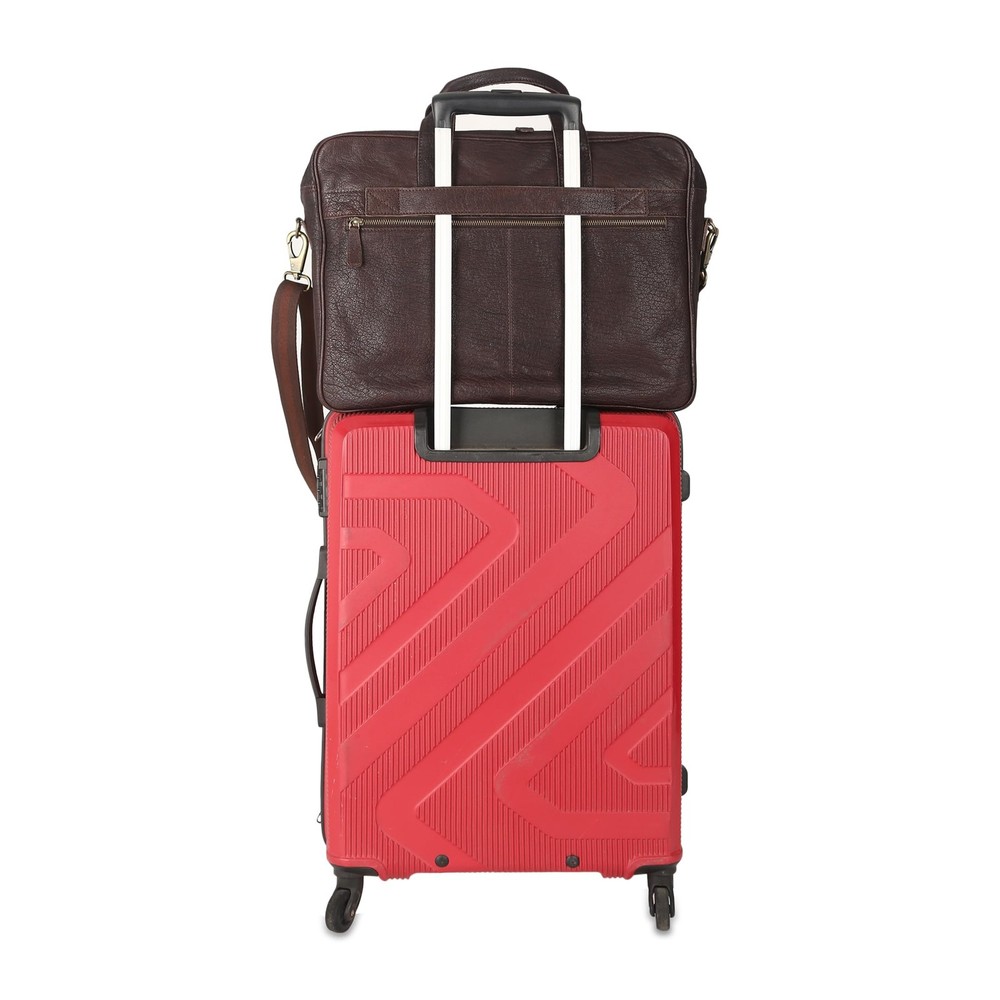 16 Inch Leather briefcases Laptop Messenger Bags for Men and Best Office Satchel Bag PREMIUM BUFFALO LEATHER AND YKK METAL ZIPPERS: Unlike Other brands which use Faux or PU leather, bags are made from Premium Top Grain Water Buffalo Leather and are made by Experienced Craftsmen. All Metal Zippers used on this bag are YKK brand which is of the most reputed in the world. 1-YEAR : A Perfect Gift for any occasion like birthdays, Christmas, Father's Day or Valentine's. This bag comes with a -year hassle-against any manufacturing defects. TROLLEY : Our bag comes with a trolley-strap so you can relax and strap it to your suitcase while at the airport or travelling. MULTIPLE SECTIONS: With Multiple Internal sections for Cell Phones, a Calculator, Slots for cards, pens and Zipper compartments including internal and back zipper, you can organise your stuff as you like. SLEEK MULTIPURPOSE DESIGN: With a size of 16-inch width, 12-inch height and 3-inch depth. This bag fits your laptop and other without looking too Bulky on the go. The bag can used as a briefcase, Laptop messenger bag or office satchel.