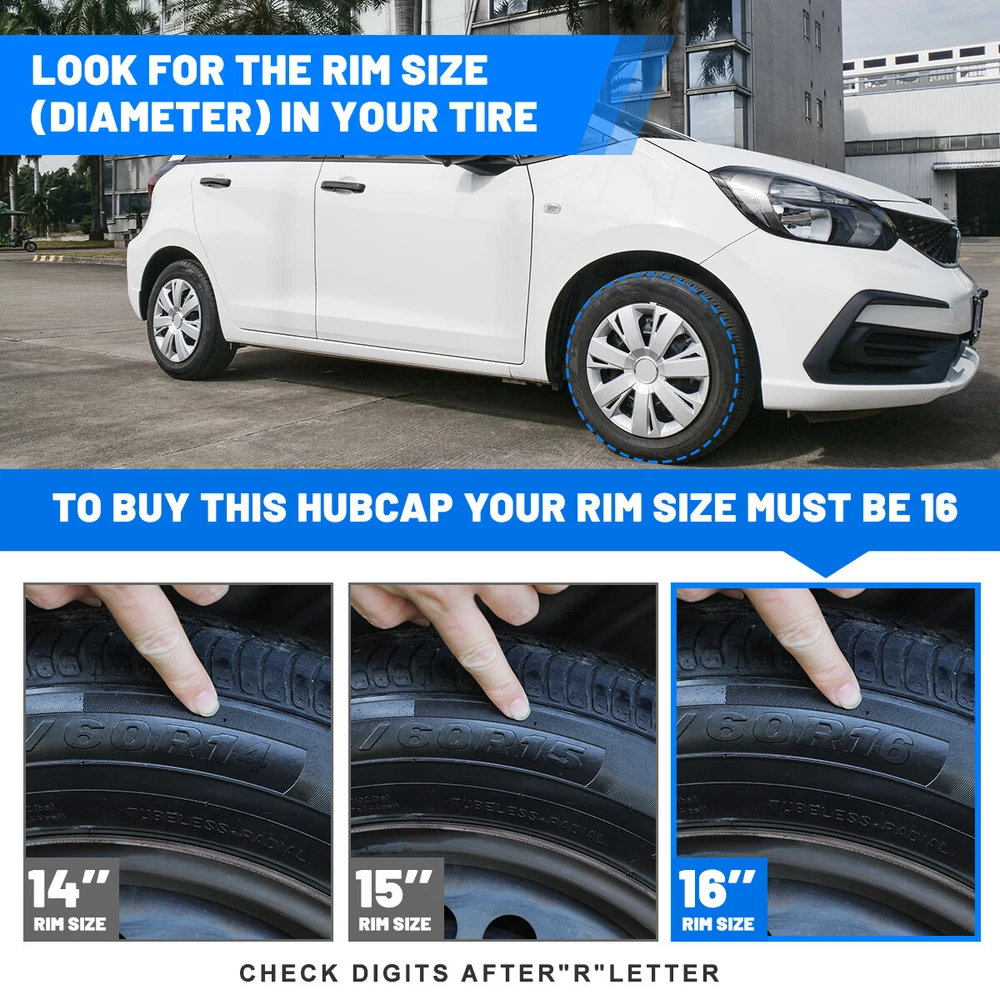 100% Brand new in box. Unused, unopened, undamaged item in its original packaging Rust proof and corrosion resistant ABS Plastic Easy push on installation with no need for tools Stainless Steel retention ring for durability and maximum grip Designed with a tire steam cut out on the hubcap and retention ring Premium designs and triple coat color paint hubcaps Come in a complete set of 4 caps and 4 retention rings 16 Inch Silver 4 Wheel Covers On Full Snap Hubcaps Caps For R16 Tire & Steel Rim This set of 4 wheel covers is perfectly designed to fit your 16 inch Tire Size Car Truck Pickup ...and easily installs over your existing factory steel wheels in minutes! These wheel covers are constructed from durable, automotive grade plastic and feature an attractive silver finish for a custom look. ---Before Purchase: Please make sure to check your tire/wheel size before purchase! To confirm wheel size, please refer to the last two digits after the "R" of the tire. Designed for steel wheels, not for alloy wheels.Not suitable for wheels with middle protrusions higher than the rim. Not suitable for iron rims with long lug nuts. ---Easy Installation: Align the grooves of the adjustable steel retaining ring with the grooves of the hubcap and align the hubcap with the tire valve before snapping it onto the wheel. ---Stylish Appearance: The rim covers are very stylish and modernized with a silver finish, easily transforming the appearance of your wheels and enhancing the overall aesthetics of your car. ---Protect Your Wheels: universal hubcap can protect the tire screws and make it waterproof and rustproof. The silver hubcaps are easy to clean and maintain, can be quickly wiped with a damp cloth to remove any dirt. ---Quality Service: The wheel cover kit is compatible with most steel wheels. NOTE: Our wheel hubcaps are not suitable for wheels fitted with dynamic balancing blocks. If you have any other questions, please contact us. Not fit for: 2004-08 MITSUBISHI GALANT Steel Wheel 2009-12 MITSUBISHI GALANT Steel Wheel Applicable to all 16inch Tire models----Car Truck Pickup...... - 7 Spoke Style - Front and Rear - Size:16 Inch - Material:High Quality Hard and Durable ABS Plastic - Fitment is for factory 16' steel wheels only Payment Delivery details Terms of sales About us Contact us Payment π We accept PayPal (Recommended), credit card, VISA, Google Pay & Discover etc. π Please submit your payment within 7 days after your purchase. π If not, eBay will automatically open an Unpaid Item Dispute on our behalf if the item(s) are not paid within 7 days. Delivery details π Please double check your delivery address and contact information. π All items will be shipped within 1 business days after payment received. π Tracking numbers will be easily accessible ASAP they are created and processed. Terms of sales π Free 30 days Return, we will cover the return post fee. π If a defective product was received, please do not hesitate to message us via eBay message. π We will response in 24 hours in business to resolve the problem π We stand behind our products. Items can be returned for exchange or full refund within 30 days from the date you receive. About us π Wolfstorm has a huge warehouse and office located in the United States. π All US domestic 48 states customers are able to benefit from the FREE SHIPPING services. π Our experienced, professional customer service representatives offers prompt and courteous service. π Best quality products, outstanding services and professional experience keep our customers. Contact us π Please feel free to contact us if you have any problems. π Emails will be replied within 24 hours in working days. π After hours emails will be replied on the next business day.