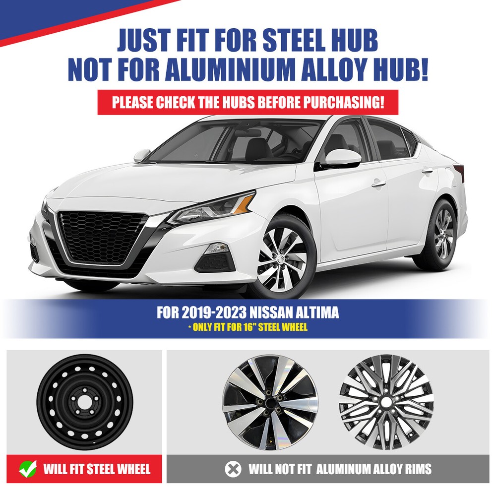 16" Sliver Hub Caps Full Rim Wheel Covers for 2019-2023 Nissan Altima Set of 4 Feature: π Please ensure to check your tire/wheel size before purchase! Designed for (p14) 14β stock steel wheels and will not fit over aluminum alloy wheels. π Designed from oem replica style wheelsβ for replacement with fast & easy snap-on installation - made from premium abs material β lab & road tested for performance and ultimate durability. π Adjustable retention rings assures firm grip gives support to the hubcaps making sure they stay in place. locate the curve on the retention ring and match to the tire air valve to install. π Installation instructions available - please refer to the images available as well as detailed instructions below for assistance. π Wolfx wheel covers fit most models of vehicle brands including acura, chevrolet, dodge, ford, honda, hyundai, kia, mazda, mitsubishi, nissan, subaru, toyota, volkswagen and more. Fitment: For 2019-2025 Nissan Altima Not fit for: 2018-25 NISSAN KICKS Steel Wheel Specification: Fits either LH (Driver Side) or RH (Passenger Side) Rear and Front Type: Wheel Hub Caps Color: Silver & Black Compatible Wheel Diameter: 16inches Features:Car Wash Safe, Easy to Install, No Tools Required Material: ABS Number in Pack: 4 Wheel Type: Steel Placement on Vehicle: Front, Left, Rear, Right Installation Type: Snap-On Package Includes: 4* Wheel Cover Hubcaps Payment Delivery details Terms of sales About us Contact us Payment π We accept PayPal (Recommended), credit card, VISA, Google Pay & Discover etc. π Please submit your payment within 7 days after your purchase. π If not, eBay will automatically open an Unpaid Item Dispute on our behalf if the item(s) are not paid within 7 days. Delivery details π Please double check your delivery address and contact information. π All items will be shipped within 1 business days after payment received. π Tracking numbers will be easily accessible ASAP they are created and processed. Terms of sales π Free 30 days Return, we will cover the return post fee. π If a defective product was received, please do not hesitate to message us via eBay message. π We will response in 24 hours in business to resolve the problem π We stand behind our products. Items can be returned for exchange or full refund within 30 days from the date you receive. About us π Wolfstorm has a huge warehouse and office located in the United States. π All US domestic 48 states customers are able to benefit from the FREE SHIPPING services. π Our experienced, professional customer service representatives offers prompt and courteous service. π Best quality products, outstanding services and professional experience keep our customers. Contact us π Please feel free to contact us if you have any problems. π Emails will be replied within 24 hours in working days. π After hours emails will be replied on the next business day. On Mar 19, 2025 at 22:48:59 PDT, seller added the following information: