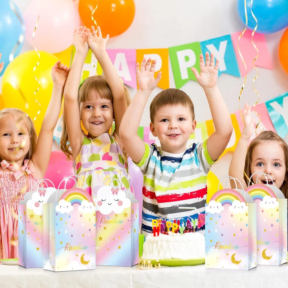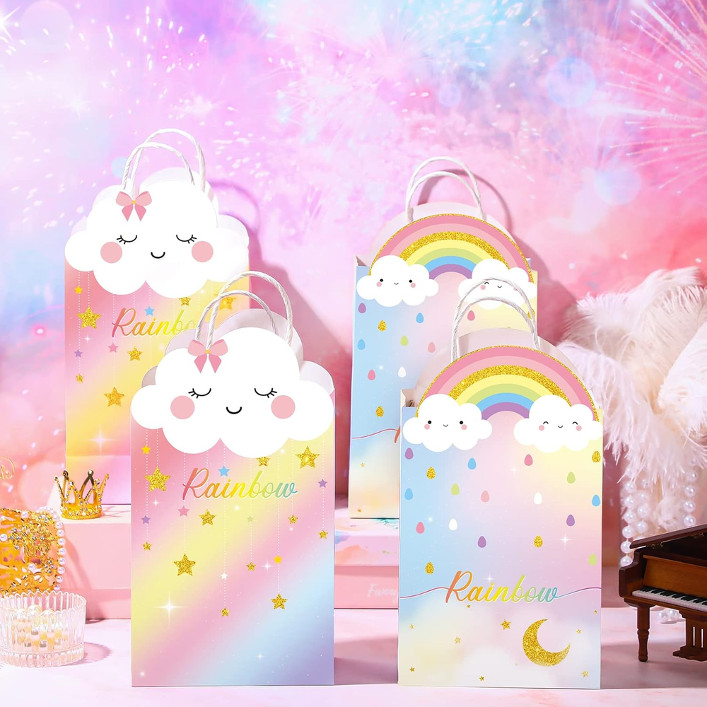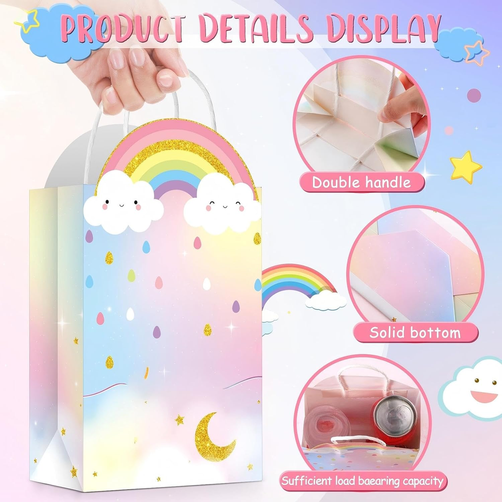 16 Pcs Rainbow Party Favor Bags 8.3 X 6 X 3.2 Inch Rainbow Cloud Birthday Goodie