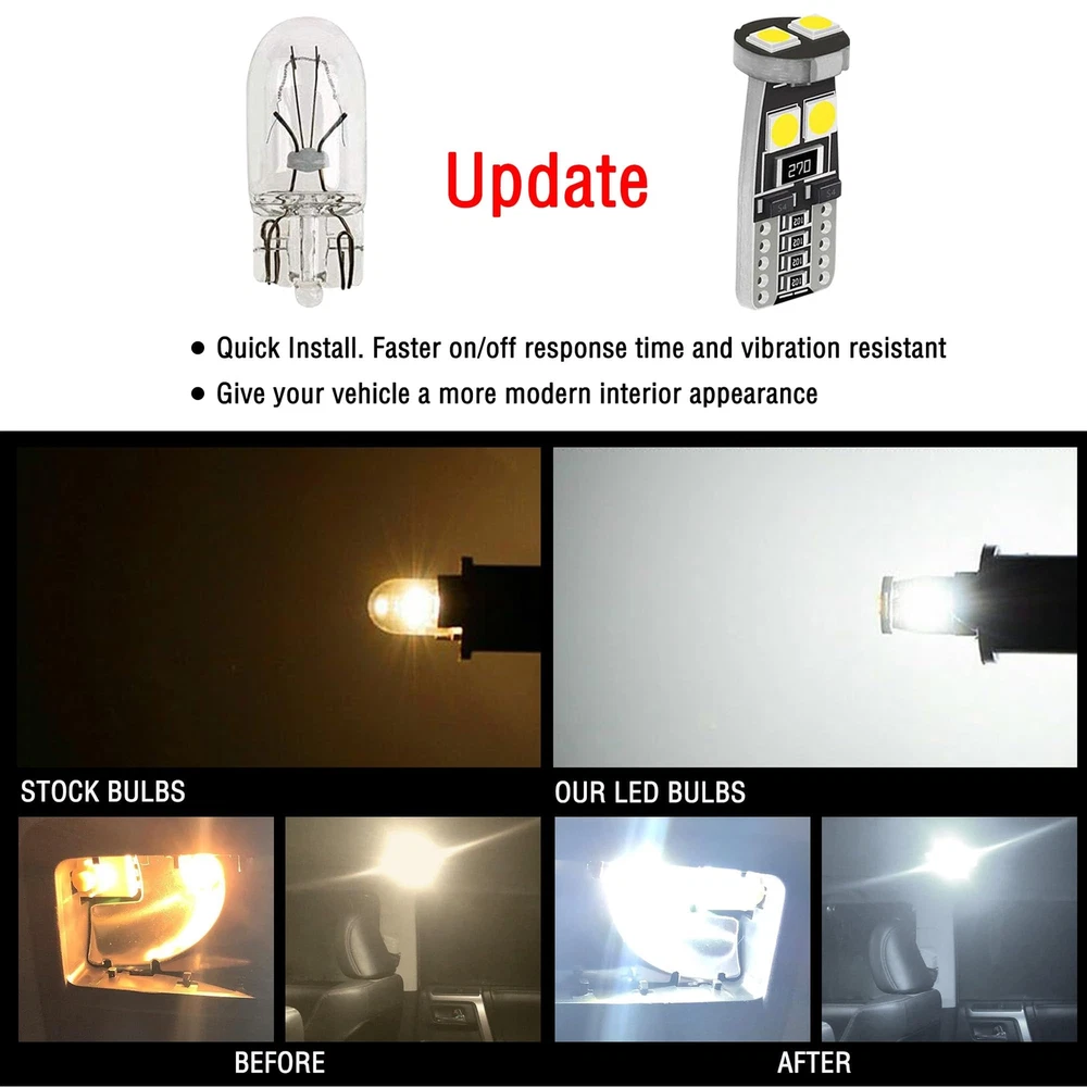 Store Categories Store Categories Other 16 Piece 6000K White LED Interior Light Kit Replacement for 2010-2022 Toyota Product Description Comprehensive Compatibility: This LED Interior Light Kit is specifically designed to Replacement for the 2010-2022 Toyota 4Runner, accommodating all trims and cab sizes for seamless installation. All-Inclusive Package: The package includes a total of 16 LED bulbs, covering various interior lighting components such as Map Lights, Dome Lights, Vanity Mirror Lights, Glove Box Lights, Footwell Lights, Courtesy Door Lights, Trunk Lights, License Plate Lights, and Side Mirror Puddle Lights. Enhanced Brightness: Experience a significant upgrade in brightness with these LED bulbs, offering a 300% improvement over the original stock lights. Built-in Constant Current IC ensures consistent illumination and a lifespan of over 60,000 hours. Hassle-Free Installation: With a plug-and-play design, installation is straightforward and requires no additional parts or modifications. Warranty and Support: Purchase with confidence knowing that GLOFE provides a 1-Year warranty. In the rare event of any product or installation issues, our dedicated customer support team is available to assist you within 24 hours. Payment Policy Shipping Policy Returns Policy Contact us FAQ Payment Policy 1. Payment must be completed via PayPal within three days following the purchase date. 2. I t is important to ensure that the address provided on PayPal matches the one listed on eBay. 3. I f you have successfully bid on an item, please arrange payment within four days to avoid receiving an Unpaid Item Reminder from eBay, w hich could negatively impact your eBay history. 4. B uyers should be aware that they are liable for any import duties, custo ms charges, and taxes that may apply. We recommend consulting with your local customs office to ascertain any extra expenses prior to finalizing your order. Shipping Policy All items will be shipped in 48 hours after receiving your payment . 1. To USA , take standard(10-20 working days) or expedited shipping(4-6 working days). expedited shipping need charge extra shipping fee. 2. To other countries, take standard(15-25 working days) or expedited shipping(5-8 working days). expedited shipping need charge extra shipping fee. Returns Policy We offer 30 days return policy. Please contact us within 30 days t from the date you receive your order if you have any issues with the product or want return .Refund will be send after we got your resend package. All returned items should be in the original packaging , return tracking information should be provided . Buyer is responsible for return shipping cost due to the problem not caused by item quality itself . Don''t worry , please remember we also hope business smooth, our mission like google "Don't be evil" and "communication make life better". Contact us Our office hours are MONDAY - FRIDAY 9:00PM - 6:00PM PST, but we will response you once we get your message .There will be some delay on response if you send message or E-Mail on weekend. We are always been trying to provide best service and reliable products for every customer. If you are satisfied with the product you received,please leave us positive feedback. If you are not satisfied for any reason, please do not be quick to leave negative or neutral feedback.We will work hard to make sure every customer 100 percent satisfied, and resolve any problem for you. FAQ Q1: Will this bulb fit my vehicle? A: We can match almost any vehicle to one of our bulb sizes. eBay only lets us include partial vehicle fitments per listing, but if your vehicle does not show up on the compatibility table at the top of our listings, welcome you to contact us for free consulation before purchasing a product. Q2: My item has not arrived, what's taking so long? A: Sometimes items take longer than expected, especially if it’s going far or to rural area. Check with your post office to see if your item has been held up. Sometimes USPS will not update a tracking number until it has arrived at its destination. If your item still has not arrived after a few days, let us know so we can double check for you and help solve it asap. Q3: Do I need to mention the Year, Make and Model in the notes when place order? A: YES. Please include the Year, Make, and Model in the notes section during checkout to ensure you receive everything needed for your kit! Q4: My bulbs wo n't fit, help! A: Special bulb holder may be required. See if you can take the holder from the stock bulb. If not, let us know. The bulb size may be wrong, double check the item you received with the item you ordered. Do you have an aftermarket lighting housing? These may not be perfectly fitted for aftermarket bulbs and will require some manual modifications. Q5: Neither side lighting up? Both sides flicker, flash, or work inconsistantly. A:Check the headlight fuses, and then check the ballast plugs to insure correct installation. If this doesn't work, there may be a voltage problem with the vehicle. You probably just need a relay or capacitor. Q6: WARNING ABOUT POLARITY Unlike halogen bulbs, LED are polarity sensitive. BEFORE you start your LED kit installation, verify the polarity on your vehicle by simply plugging the LED bulb into your vehicle socket. - if your light turns on, please proceed to install both bulbs onto your vehicle. - if your light DOES NOT turn on, disconnect the bulb and flip the socket in order to reverse the polarity (this will not damage your vehicle electrical system in any way). Once you made sure the LED bulb turns on, please proceed to install both bulbs onto your vehicle. Note: There is no convention when it comes to polarity. Different car manufactures have different polarity setup, even within the car model the polarity setup on your low beams and high beams might be different. Copyright © 2023 Dianxiaomi