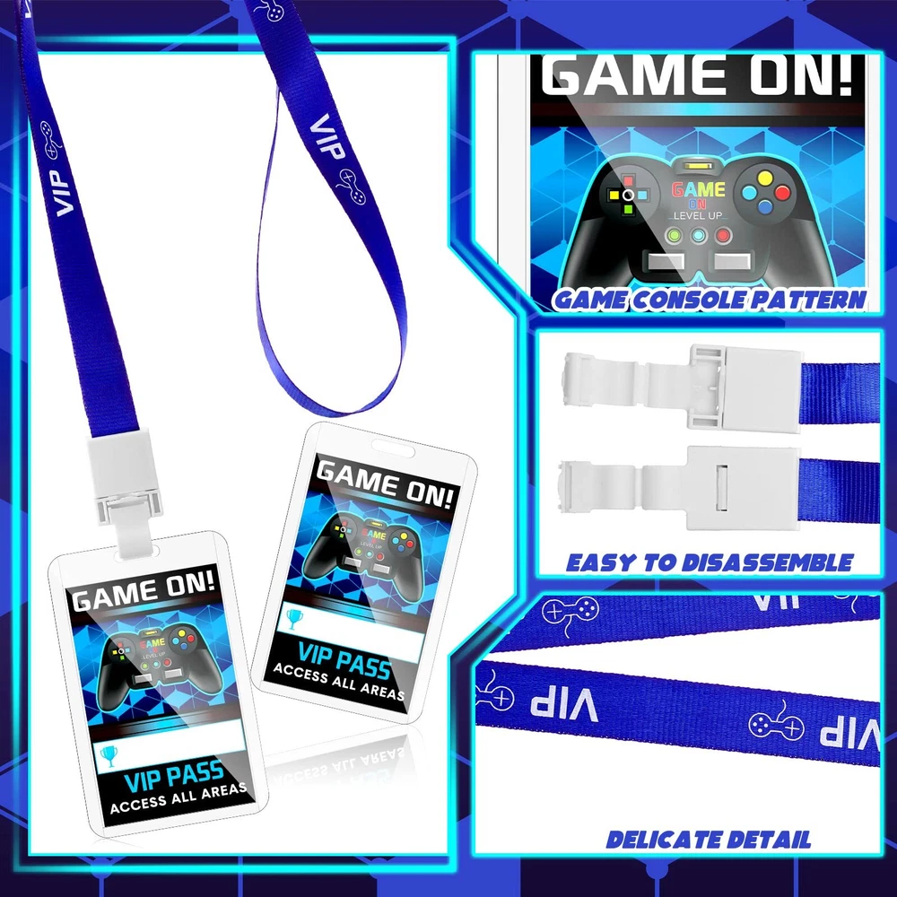 16 Pieces Blue Video Game VIP Pass Holder Tickets Set Video Game Party Favors...