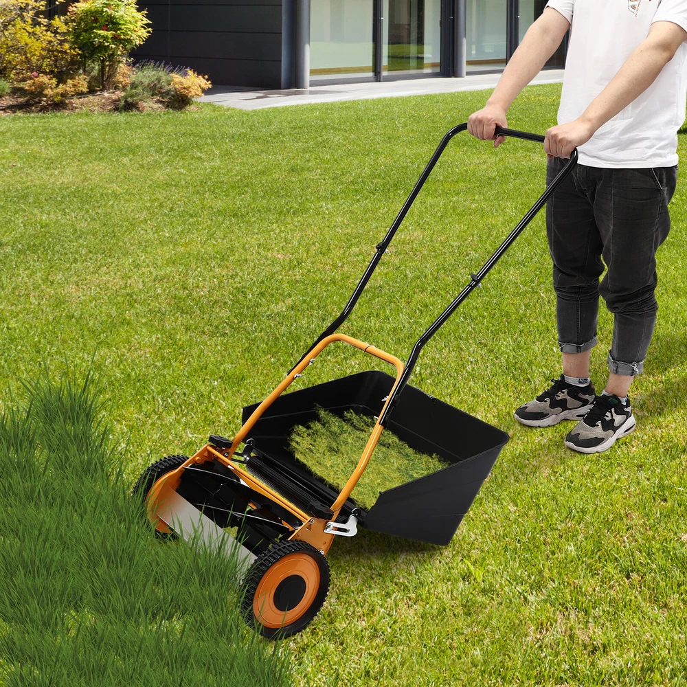 Specifications Material: Steel, Aluminum Process: Plastic Spraying Color: Orange, Black Style: Modern Assembly Required: Yes Mount Type: Freestanding Operation Type: Manual Number of Wheels: 2 Adjustable Mowing Height: 12-42mm/ 0.47-1.65 in Each Wheel Diameter: 20.5cm/ 8.07 in Cutting Width: 40.64cm/ 16 in Handle Size: 66*41cm/ 25.98*16.14 in Wheel and Handle Articulation Size: 41*27cm/ 16.14*10.63 in Overall Product Width: 53cm/ 20.87 in Package Size: 55*36*32cm/ 21.65*14.17*12.60 in Gross Weight: 9.5kg/ 20.94 lbs Package Included 1* Hand Push Lawn Mower 1* Grass Collecting Box Other Accessories for Assembly 16" Walk Behind Manual Reel Mower Adjustable 5-Blade Hand Push Lawn Catcher Yard Description Imagine a weekend morning with the sun shining as you push this lawn mower slowly through your small yard and have an intimate conversation with nature. It is made of high-strength steel, sturdy and durable. Fine craftsmanship ensures that every detail of it stands the test of time. Its ergonomic handle design makes every push a breeze. Together, let's discover extraordinary fun on ordinary days! Key Features Sturdy and Durable: The product is made of high-quality steel and aluminum, using plastic spraying technology, with high strength, wear resistance, and long service life. High Efficiency: With a cutting width of 16 inches and sharp four 5-edged blades, this product enables faster and more efficient mowing work to build your backyard or garden with ease. Adjustable Height: With the knobs on the product, you can easily adjust its cuttable height (0.47-1.65 inches) to meet your needs for different styles of lawns, creating your private oasis. 2-in-1 Function: This product combines the functions of mowing and collecting grass in one. The rear collection box with a fixing chain allows you to collect the grass as you mow to prevent it from scattering on your lawn and taking the effort to clean it up again, which is very convenient. Move at Will: The 2 front wheels with a diameter of 8.07 inches and non-slip patterns allow you to push this mower on the lawn as if you were on flat ground, helping to achieve maximum maneuverability for a better mowing experience. Environmentally Friendly: Without complicated electric power or fuel, this product operates in the most primitive and economical way with zero emission and low noise, providing a healthier and fresher living environment for you and your family. Enjoy Fun: It is not only a tool but also a link between family members' emotions. Bring your children along to participate in yard care, let them feel the charm of nature in labor, enhance the interaction and tacit understanding between parents and children, letting happiness and love permeate with the fragrance of grass. Easy Installation: With complete accessories and simple construction, you can assemble it yourself and enjoy the installation process. Ideal Gift: Thanks to its functionality, you can give it to your friends who have a beautiful backyard as a housewarming, Christmas, or Thanksgiving gift! Details Ergonomic Handle: It's the right height and comfortable to hold, making it easy to push even for novices and older people. Round Corners: They take better care of your skin when you assemble, use, and clean this product. Application It can be used for villas, homes, backyards, park landscaping, factory landscaping, grassland woodland gardens, and more. Specifications Material: Steel, Aluminum Process: Plastic Spraying Color: Orange, Black Style: Modern Assembly Required: Yes Mount Type: Freestanding Operation Type: Manual Number of Wheels: 2 Adjustable Mowing Height: 12-42mm/ 0.47-1.65 in Each Wheel Diameter: 20.5cm/ 8.07 in Cutting Width: 40.64cm/ 16 in Handle Size: 66*41cm/ 25.98*16.14 in Wheel and Handle Articulation Size: 41*27cm/ 16.14*10.63 in Overall Product Width: 53cm/ 20.87 in Package Size: 55*36*32cm/ 21.65*14.17*12.60 in Gross Weight: 9.5kg/ 20.94 lbs Package Included 1* Hand Push Lawn Mower 1* Grass Collecting Box Other Accessories for Assembly Notes Please note that this product is not recommended for use in high lawns(>1.65 inches). Please do not touch the blades with your bare hands, we recommend that you wear protective gloves(not included) when using this product. Please allow the slight color difference caused by the shooting light and 1-3cm error due to manual measurement, and make sure you do not mind before you order. Payment Delivery details Terms of sales About us Contact us Payment We accept ebay payment 。 Fees such as import duties, taxes are not included in the item price or shipping costs. These charges are the buyer's responsibility. Delivery details Shipping: 2-9 working days to: USA Terms of sales We maintain high standards of excellence and strive for hundred percent customer satisfaction. Feedback is very important to us. We hope that you contact us immediately before you give neutral or negative feedback, so that we can address your concerns. It is impossible to address issues if we do not know about them! About us Your satis faction is our ultimate goal. We work hard to earn your trust and future business. Our certified technicians have tested each item before shipping. The unit comes with 1 year limited warranty on all manufacturing defects. a) If you receive a defective item, you may return it or ask for a discount. Please contact us within 14 days after you receive the package. b) What you returned must be intact and in its original packaging as re? u. Customer is responsible for shipping costs of the returned item. c) We will cover the cost of shipping back t with the shipping rate indicated in the registration page. We will send you a new unit or refund the full payment you paid. Thank you. Contact us Business Hour Business Hour: Monday To Friday: 8:30 AM to 5:00 PM (Beijing China time) Due to time zones, our reply to your questions may not be immediately. But within above working time, we will reply your email within 24 hours. If it's non-work