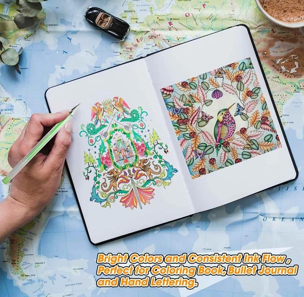 PROFESSIONAL QUALITY: None of toxic, acid free, lead free and all of the materials are eco-friendly. Conform to ASTM-D4236. Safe using. It's made of high end refill, which contains superior ink. The hard tip (tip size 0.8-1.0mm) makes these pens writing smoothly and using durable! VARIOUS COLORS: We collect all the popular colors together and make each not single to avoid the refill of being used up quickly. Glitter, Metallic, Pastel, Standard and Neon. Ready for you to choose. DIFFERENT USAGES: Perfect Art Ink Pen for Scrapbooking, Coloring, Journal, Nail Art, Kids, Sketching, Painting, Drawing, Writing , Tattoo & Custom Artistic Creations! Get busy with art projects or relax with an adult coloring book! CLASSIC PACKING:160 Pack Gel Pen Set with plastic packing. Easy to take. Could be an amazing gift for children and adults! Get it and Enjoy it! Product Description After facing the computer all day long in the office, please have a break and relax yourself, let yourself stay away from the radiation, and enjoy the interest of coloring quietly. As computer and smart phone take up a lot of our time and energy, coloring on paper allows us to slow down rhythm of life and experience the beauty of life.And the product is acid-free & safe for kids,you can use it safely.