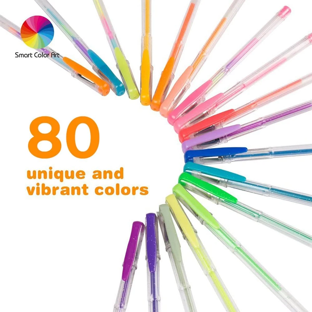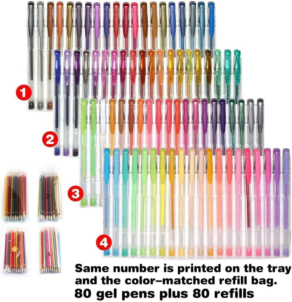 160 Colors Gel Pens Set 80 Gel Pen with 80 Refills for Adult Coloring Books Draw