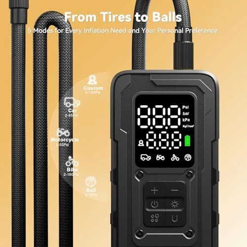 Return Policy Fast Delivery Trusted seller Tire Inflator Portable Air Compressor - 4X Faster 160 PSI Air Pump for Car Tires - Wireless Car Tire Inflator with Pressure Gauge - Portable Tire Inflator for Car, Pickup, Motor and More Product Description [Travel Companion] tire inflator portable air compressor is your reliable travel partner. This air compressor for car can inflate tires from 30PSI to 36PSI in just 1 minute. Perfect for long road trips, this portable tire inflator for car lets you top up tire pressure quickly—about the time to enjoy a cup of coffee! Skip the trip to the gas station to refill the flat tire or replace the flat tire on the road, this air pump for car tires can let you enjoy the absolute pleasure of driving [Faster Inflation & Quick Cooling] Equipped with an advanced pump core and a powerful 22,000RPM motor, this cordless tire inflator delivers a 35L/min airflow—4X faster than traditional inflators. The air hose features a unique knob design, crafted from automotive-grade materials. Paired with graphene and a built-in cooling fan, its dual heat dissipation technology keeps the surface temperature up to 60℉ cooler than other inflators, ensuring uninterrupted performance even during extended use [Lower Consumption & More Powerful Battery] This tire inflator portable air compressor has a 7800mAh high-multiplier battery paired with a low-consumption chip, boosting performance by 40% compared to the standard rechargeable tire inflator. With this powerful battery, you don't need to worry about frequent recharges. This cordless tire inflator can fully inflate four 205/55/R16 tires or add 20% air to more than 20 tires on a single charge—offering reliable, long-lasting performance for you [Lots to Own, Less to Spend] portable tire inflator for car offers exceptional value with 4 preset modes for Car, Motorcycle, Bike, and Ball, plus a Custom mode up to 160PSI. Compatible with a wide range of vehicles—including SUVs, MPVs, and Pickup trucks—it comes with 4 valve adaptors to handle all your inflation needs. Featuring a built-in sensor for real-time and accurate tire pressure, the large LED screen ensures easy visibility of tire pressure values, even in bright sunlight [Safe & Reliable] One- design makes easy to use. Set down the desired value on this portable air compressor for car tires, this cordless tire inflator will auto shut off when it reaches to avoid the hazards caused by over-inflation. This air compressor for car, made from UL94-V0 fireproof material, provides all-round safety protection from overcharge, short-circuits, overheating, etc. Even if you're a novice about air pump for car tires, you can get started quickly and use it safely [For Daily & Emergency] When you're driving for road trips or camping, this portable air pump for tires can be used as a compact power bank and a flashlight in darkness for emergencies. This tire inflator portable air compressor is also necessary for daily. You can use it for tire maintenance regularly, without the hassle of driving the car to the nearest gas station and paying for air. Or pump up the deflated bicycle tires, basketball, or football for your children before they play daily Shipping Returns Payment Shipping Shipping is FREE to all addresses other than APO/PO boxes in the lower 48 states. All our stock ships from US-based warehouses. Shipped via USPS or UPS (depending on location and package weight) Unless stated otherwise, all orders will ship within 24-72 hours of your payment being processed. Check our feedback to see the great reviews of FAST shipping we offer. Returns Seller does not accept returns Payment We currently accept payment via eBay managed payments only. Once payment is cleared, we will dispatch your shipment within 1-3 business days. Please refer to the "Shipping" tab for more information regarding shipping speed to your destination.