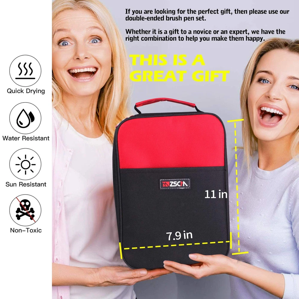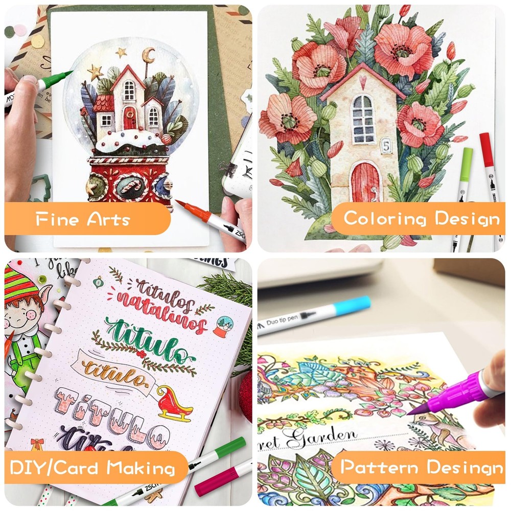 art-paint-pens-and-markers BRIGHT AND LONG LASTING: ZSCM 160 colors Duo tip brush markers 2 different tips: 0.4mm fine tip and 1-6mm brush tip, flexible and strudy. Fine tip is great for sketch outlining thin lines and soft brush tip for shading and quickly color in large areas art project. Perfect brush marker set for your next masterpiece. 160 CLASSIC VIVID COLORS OPTIONS: This complete set of Duo Tip Pen art markers comes with a whopping 160 unique and vibrant color options to choose from, NO duplicate. Meet all you need for adult coloring books, drawing, coloring, sketching, doodling and just about anything else. SMOOTH WRITING, FAST DRYING: With nicely pigmented Water-based dye inks, odorless, no leak, non-toxic. colors can be dispersed and mixed with water. no need worrying about smudges and blotches,Those coloring book markers are completely non-toxic, and can be wash off easily with water. STAY NICE AND ORGANIZED GREAT GIFT: Our Duo tip marker pens organized in the included Waterproof canvas bag container! Wonderful Gift for Birthday, Graduation, Halloween, Christmas, Thanksgiving day or anyone who loves drawing, painting, sketching, writing, journaling, brush lettering, crafting, doodling, watercolor painting, illustrations. SERVICE PROMISE:Customer is our top priority. Please keep caps tight after every use. If you are not satisfied for any reason, please let us know and we will respond to you within 24 hours.