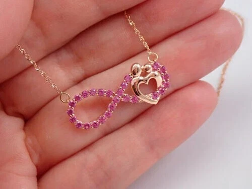 1.60Ct Round Lab Created Sapphire Infinity Heart Pendant 14K Yellow Gold Plated