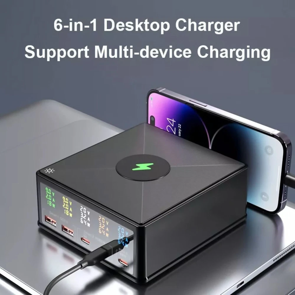 Product Description 160W 6in1 Wireless Fast Charger USB-C PD QC3.0 Charging Station For Huawei Features: High-Power Multi-Device Charging: This charger boasts a powerful 160W capacity and supports a 6-in-1 minimalist multi-charging design, effortlessly catering to the charging needs of various devices. Whether it's a For MacBook, For iPhone, or other compatible devices, it achieves efficient charging without the need for frequent charger swapping, bringing convenience to your life. Advanced Charging Protocols: Utilizing PD+QC3.0 charging protocols, it makes the charging process even more efficient. With a single port supporting PD65W fast charging, it can quickly replenish device batteries, meeting the charging demands of today's fast-paced lifestyle. Intelligent Power Allocation: Equipped with intelligent power allocation functionality, it automatically adjusts charging power based on the number and type of connected devices, ensuring optimal charging for each one. This design not only enhances charging efficiency but also extends device lifespan. Color LCD Display: Featuring a color LCD display, it precisely shows charging parameters such as voltage, current, and power. The readings are clear at a glance, allowing you to keep track of the charging status at any time for more convenient use. Safe Anti-Slip Design: The specially added silicone pad for wireless phone charging ensures the charger doesn't slip during use, safeguarding your devices and the charger itself. It also provides additional protection and stability for your phone. Multiple Protection Mechanisms: It incorporates multiple protection mechanisms including current protection, overvoltage protection, overtemperature protection, power protection, undervoltage protection, and short-circuit protection. These mechanisms ensure the charger's safety during prolonged, high-power operation, effectively preventing device damage or safety hazards due to unexpected situations. Specifications: Material: ABS+PC Color: Black Size: 126*116*50mm / 4.96*4.57*1.97in Input Voltage: 100-240V (50-60HZ) Ports Number: 5 (USB-A*2, Type-C*3) USB-A Output: (Max 18W) 5V/3A,9V/2A,12V/1.5A Type-C Output: (Max 65W) 5V/3A,9V/3A,12V/3A,15V/3A,20V/3.25A Wireless Charging: 15W/10W/7.5W/5W Total Output: 160W Power Cord Length: 120cm/47in Compatibility: For iPhone, for iPad, for MacBook, for Samsung, etc. Package Included: 1 x Charger 1 x Power Cord If you have any questions, please feel free to contact us via ebay. We usually respond within 24 hours. Payment Shipping Returns Contact Us We accept all verified payments from ebay. Orders will be shipped after receiving cleared payment. Payment due within 7 days after auction ends and for buy it now listings. We ship most of our orders within 24 hours, and may up to 48 hours for. If you want faster shipping way. Please contact us before making payment. Sometimes due to problems with our transportation company system, your shipping information may be delayed to update. We recommend that you try again after 3-4 days. If you still haven't checked the shipping information, you can contact us by ebay message. Always believe we can figure things out with communication, if it comes to return, the pacakge must be intact and the same as you receive. If you have any questions, please feel free to email our service specialists 24 Hours a Day, 7 Days a Week. We will reply you ASAP. Return/refund is accepted within 30 days after the buyer receives the item. NO exchange will be accepted after 30 days from the date when the item is received. Please contact us first before returning your product!!! If you have any questions, our Customer Service staffs welcome you to email us. We strive to answer all questions and resolve any problems as quickly as possible. You can contact us 7*24, we will reply at the first time, and we will surely solve your problems. Note: 1.We try our best to reply to your emails as soon as possible, however, due to high volume of daily incoming emails and time zone difference, we may not be able to reply your emails immediately. Please allow 1 business days for us to response. If you do not receive any reply from us, please check your email ensuring your mailbox has not reached full size. 2.Due to some ISP SPAM filter settings, you may not be able to receive our replies; if you have problems receiving our emails, you may need to use a different email account to contact us. 3.Please give us the opportunity to resolve any problem. We understand the concerns and frustrations you might have, and will try our best to resolve the issues. Please email us before leaving any negative feedback or open any dispute on PayPal. 4.We care about our valued customers, and will always try to help you. So if you have any problems, please e-mail us immediately. Payment We accept all verified payments from ebay. Orders will be shipped after receiving cleared payment. Payment due within 7 days after auction ends and for buy it now listings. Shipping We ship most of our orders within 24 hours, and may up to 48 hours for. If you want faster shipping way. Please contact us before making payment. Sometimes due to problems with our transportation company system, your shipping information may be delayed to update. We recommend that you try again after 3-4 days. If you still haven't checked the shipping information, you can contact us by ebay message. Returns Always believe we can figure things out with communication, if it comes to return, the pacakge must be intact and the same as you receive. If you have any questions, please feel free to email our service specialists 24 Hours a Day, 7 Days a Week. We will reply you ASAP. Return/refund is accepted within 30 days after the buyer receives the item. NO exchange will be accepted after 30 days from the date when the item is received. Please contact us first before returning your product!!! Contact Us If you have any questions, our Customer Service staffs welcome you to email us. We s