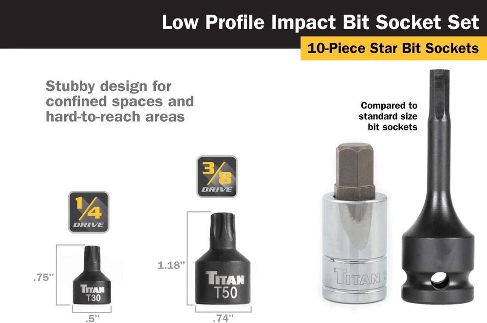 Store New Arrivals Add to Favorite View Feedback Contact 16142 10-Piece Stubby Star Bit Socket Set Description Item model number 16142 Style Stubby Star Power Source Hand Powered Country of Origin Taiwan Warranty Description Limited Lifetime Warranty Drive System Star Batteries Included? No Measurement System Metric Number of Pieces 10 Batteries Required? No Finish Steel Material Chrome Molybdenum Steel Finish Type Steel Included Components Tools - 10-Pc Stubby Star Bit Socket Set (16142) Item Package Quantity 1 Item Weight 6.4 ounces Part Number 16142 Color Factory Is Discontinued By Manufacturer No Compatible Fastener Range 0.25 inches Global Trade Identification Number 00802090161421 Manufacturer Tools Product Dimensions 0.5 x 3.8 x 10.6 inches Size 1/4, 3/8-Inch Dr. Star Includes (6) 1/4" drive and (4) 3/8" drive bits and (1) steel storage rail 3/8" drive bit sizes: T40, T45, T47 and T50 1/4" drive bit sizes: T10, T15, T20, T25, T27 and T30 Low profile design for confined, hard to reach areas Impact grade Value-priced, high quality tools - leading the market by ensuring that products are rugged, reliable and reasonably priced. ABOUT US We offer the best prices around on high quality products. Our E-store includes media such as books, movies, music and games while offering electronics, toys, sporting apparel, clothing, tools, general home, garden items and more. SHIPPING We are always working hard to ensure your package arrives as soon as possible. Please understand that some factors like weather, high postal traffic, and the performance of shipping companies are outside of our control. We offer free shipping to the lower 48 states and ship within 2 business days of payment, usually sooner. We do not accept P.O. Boxes. Please provide a physical address. For shipping outside of the continental USA, we only use eBay's Global Shipping Program.The item is shipped to KY and then sent to the rest of the world. International customers are responsible for all duties and taxes. Continue to check out in order to calculate costs for shipping the item to your country. Messages regarding eBay's Global Shipping Program MUST be directed at eBay EXCLUSIVELY. RETURNS We offer a 30-Day Return Policy on items which you are not completely satisfied with. You have the option for a full-refund or an exchange of the item. No returns are available on items shipped outside of the USA. PAYMENT We accept PayPal. CONTACT US This page content is yet to come Please ad us to your favorite seller and visit again later Thank You CUSTOMER SATISFACTION We try our very best to make sure every customer is completely satisfied. If there's a problem, message us! We're happy to help. WE ACCEPT Copyright © 2021 AutoDS. | All Rights Reserved