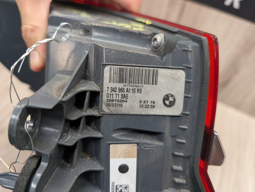 16-19 OEM BMW G11 G12 740 750 M760 B7 Rear Right Passenger Outer LED Tail Light SKU: 41699 Brand: BMW Condition: Used Notes: 30 day warranty! MPN: 7342966 Manufacturer Part Number: 63217342966 OE/OEM Part Number: 7342966 We're on Instagram! Follow us! oe_mgarage All parts are used unless otherwise noted! Please understand that being that parts are used there may be some wear and tear & scratches etc. We cannot guarantee the condition of paint & or that paint color will be an exact match as yours. We try to show as much of the condition as possible through photos and notes! Original Car: 2017 BMW 740i Series: G12 Vin Number: WBA7E2C53HG739365 Mileage: 95571 Engine: B58B30M0 Transmission: 1 Part number: 7342966, 63217342966 Exterior Color Paint Code: SINGAPUR GRAU METALLIC (B41) SKU: 41699 Location: W508 Notes: Aluminum is peeling a little bit!! 30 day warranty! 30 DAY WARRANTY!! Warranty covers the cost of the item! It does not cover shipping or labor! Used condition items may have minor imperfections. Please look at pictures for details! And understand that this is a USED part after all! Compatibility is the responsibility of the customer to ensure!! Please feel free to reach out with any questions!!