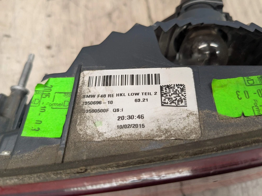 16-22 OEM BMW F48 X1 28i 28iX Rear Right Passenger Side Inner Trunk Tail Light SKU: 43967 Brand: BMW Condition: Used Notes: 30 day warranty! MPN: 7350696 Manufacturer Part Number: 63217350696 OE/OEM Part Number: 7350696 We're on Instagram! Follow us! oe_mgarage All parts are used unless otherwise noted! Please understand that being that parts are used there may be some wear and tear & scratches etc. We cannot guarantee the condition of paint & or that paint color will be an exact match as yours. We try to show as much of the condition as possible through photos and notes! Original Car: Unknown BMW Unknown Series: Unknown Vin Number: Unknown Mileage: 1 Engine: Unknown Transmission: 4 Part number: 7350696, 63217350696 Exterior Color Paint Code: Unknown SKU: 43967 Location: W509 Notes: 30 day warranty! 30 DAY WARRANTY!! Warranty covers the cost of the item! It does not cover shipping or labor! Used condition items may have minor imperfections. Please look at pictures for details! And understand that this is a USED part after all! Compatibility is the responsibility of the customer to ensure!! Please feel free to reach out with any questions!!