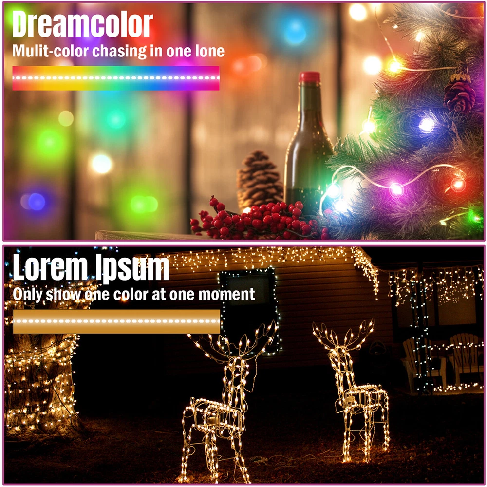 16/33FT 50/100LED Strip Rope Light Tube String Garden Party Xmas Wedding Outdoor HOT POINTS: đ ăUSB POWEREDă NOT Battery Operated. It won't kill through your batteries. Benefit from the USB design, you can simply use a power bank to make it to be a portable string light and use it anywhere you want. You can hook it up to your existing phone USB charger and then plug it into the outlet. đĄ ă8 LIGHTING MODES & ADJUST BRIGHTNESSă Dimmable and Remote Control. 2 ways to control the light. Use either the blue switch button on USB or the remote controller to turn on/off the string light and to choose between the 8 blinking modes and the stay on mode. đ ăRGB 16 COLORS CHANGINGă Ollny rope lights offer 16 colors (red, pink, blue, yellow, orange, etc.) with more vibrant colors. More color options are available to meet different use scenarios and DIY ideas â±ïž ăREMOTE & APP CONTROLă The light string can be connected with the cell phone APP through Bluetooth, so you don't need to go near the light string to operate it in person, you just need to move your finger on the cell phone to realize the control of the light string. đ” ăMUSIC AND VOICE SYNCă Switch to music mode, you can choose your favorite music and the lights will bounce to the rhythm of your favorite song. Multi-color string light use microphone to detect and match the music to synchronize with the music, turning your space into a dynamic light show. (Cannot play music) đŠ ăWATERPROOFă With the IP65 rating the light string is protected from water jets. So it is rainproof and can be installed outside. Please note that the USB Plug should be protected for outdoor use. đ ăFLEXIBLE TO BEND INTO ANY SHAPEă This rope light is soft and can be flexibly use to decorate the outline of building, window, walkway, patio, garden, fence, porch, restaurant, clubs, pool deck, bar and more. đ ăNO NOISEă The light string components are of good quality, subject to current fluctuations and electromagnetic interference is less, in the working process is not easy to produce noise. đ ăINDOOR AND OUTDOOR USEă You can install the fairy string light on an outdoor tree or ladder, it can be used as Christmas tree lights, bedroom decorations, or to create a festive atmosphere for festivals, parties, weddings and so on PRODUCT PARAMETER Voltage: 5V Color Temperature: 3000K Number of Lamp Beads: 100LED/50LED Material: PVC Length: 10m/33ft , 5m/16.4ft PRODUCTS INCLUDE: 1x Light String 1x Remote Control Payment Delivery details Terms of sales About us Contact us Payment Payments: Paypal, Google Pay, Visa, Master Card, Amerian Express, Discover. Delivery details All items are shipped from US warehouse located at NJ . We ship to your eBay or Paypal address. Please make sure your eBay or Paypal address is correct before you pay. Terms of sales Free return About us Pls contact our customer service firstly if have any problems , we will help to solve the issue, and could offer free return service for full refund or free replacement after confirming. You can buy from us with confidence Contact us If have any problems, please feel free to contact us.