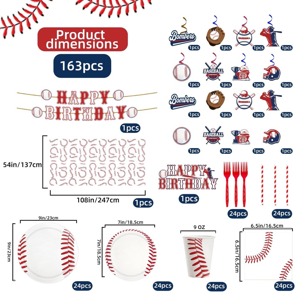 163pcs Baseball Party Decorations, Baseball Birthday Decorations Include Baseball Plates and Napkins Set, Banner, Tablecloth, for Baseball Birthday Party Decorations, Serve 24 Product Details Style: 163pcs Baseball Party Decorations Brand: Tonyta party MPN: Baseball -163pcs UPC: Does not apply EAN: Does not apply Color: Red and White Material: Paper, Plastic Included Components: Baseball Party Decorations, Baseball Birthday Decorations Include Baseball Plates and Napkins Set, Banner, Tablecloth, for Baseball Birthday Party Decorations, Serve 24 See more Unit Count: 1.0 Ounce Brand: Tonyta party Included Components: Baseball Party Decorations, Baseball Birthday Decorations Include Baseball Plates and Napkins Set, Banner, Tablecloth, for Baseball Birthday Party Decorations, Serve 24 Brand Name: Tonyta party Occasion: Birthday, Sports Party Subject Character: Baseball Manufacturer: Tonyta party Color: Red and White Theme: Baseball, Sport Pattern: Baseball Item Shape: Round Material: Paper, Plastic Unit Count: 1.0 Ounce Complete Party SetOMPLETE PARTY SET: 163-piece baseball-themed party decoration kit includes plates, napkins, banner, and tablecloth to serve 24 guests Baseball Themed Design: Our baseball-themed plates come in a classic color inspired by a baseball game. With classic red and white baseball patterns, our design is both attractive and elegant,which can make your guest feel the passion and dynamism of baseball, Set the tone for your baseball party with our products, creating unforgettable memories for the baseball fans Baseball Supplies Size Information: these baseball party plates have 2 different sizes, about 7 inches/ 17.78 cm and 9 inches/ 22.86 cm in diameter respectively, the baseball napkins are about 6.5 x 6.5 inches/ 16.51 x 16.51 cm, the baseball tablecloth are about 54x108inch,the cup are about 9oz,the forks are about 6.5 inches/ 16.51 cm in length, a proper size for your use Wide Usage: You can use these decorations as photo props,take fun photos with friends, which are suitable for sports theme birthday parties, little boy's baby showers, baseball game night, baseball-themed parties and more. Definitely will make your kids party full of lively atmosphere, unforgettable stylish party for you Enjoy Party And Save Time: Our disposable baseball napkins and plates supplies set make party preparation a breeze. No need to wash cloth napkins or plates, simply use and dispose of them for a hassle-free clean-up. That's why we designed this baseball theme birthday party tableware set Transform your baseball-themed celebration into a grand slam event with this comprehensive 163-piece party decoration set from Tonyta party. Perfect for birthday parties, this all-in-one collection serves up to 24 guests in style. The set features baseball-themed plates and napkins that bring the spirit of America's favorite pastime to your table. A festive banner adds a decorative touch to your party space, while the included tablecloth protects your surfaces while maintaining the baseball theme. Each piece in this collection is carefully coordinated to create a cohesive look that will delight young baseball fans. The compact packaging, measuring just 8 x 5 x 2.99 inches, makes storage and setup a breeze. Whether you're planning a little league celebration or a baseball-themed birthday bash, this decoration set has everything you need to create a memorable sporting event atmosphere.