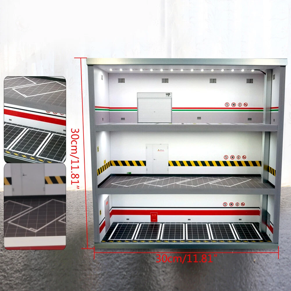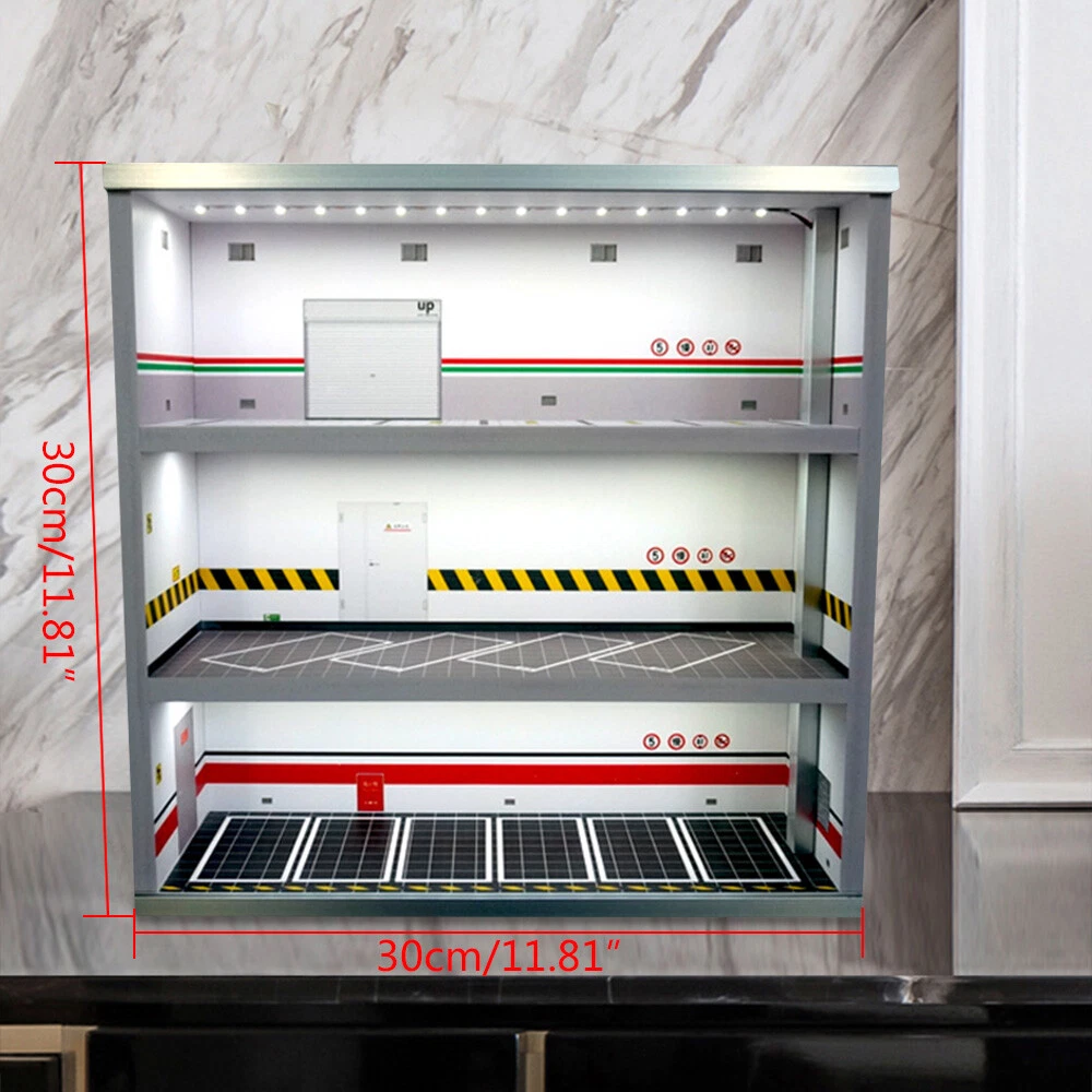1:64 3-Layer Diecast Car Model Display Cabinet Parking Lot Case w/ LED Light
