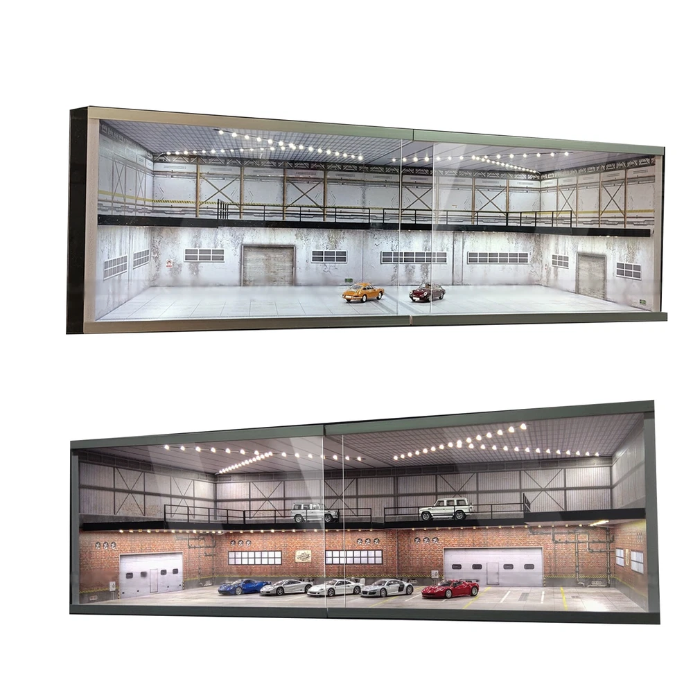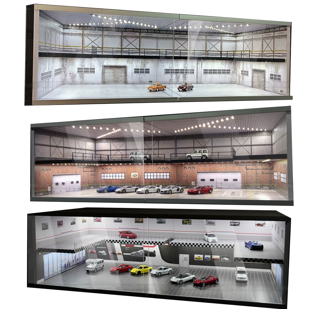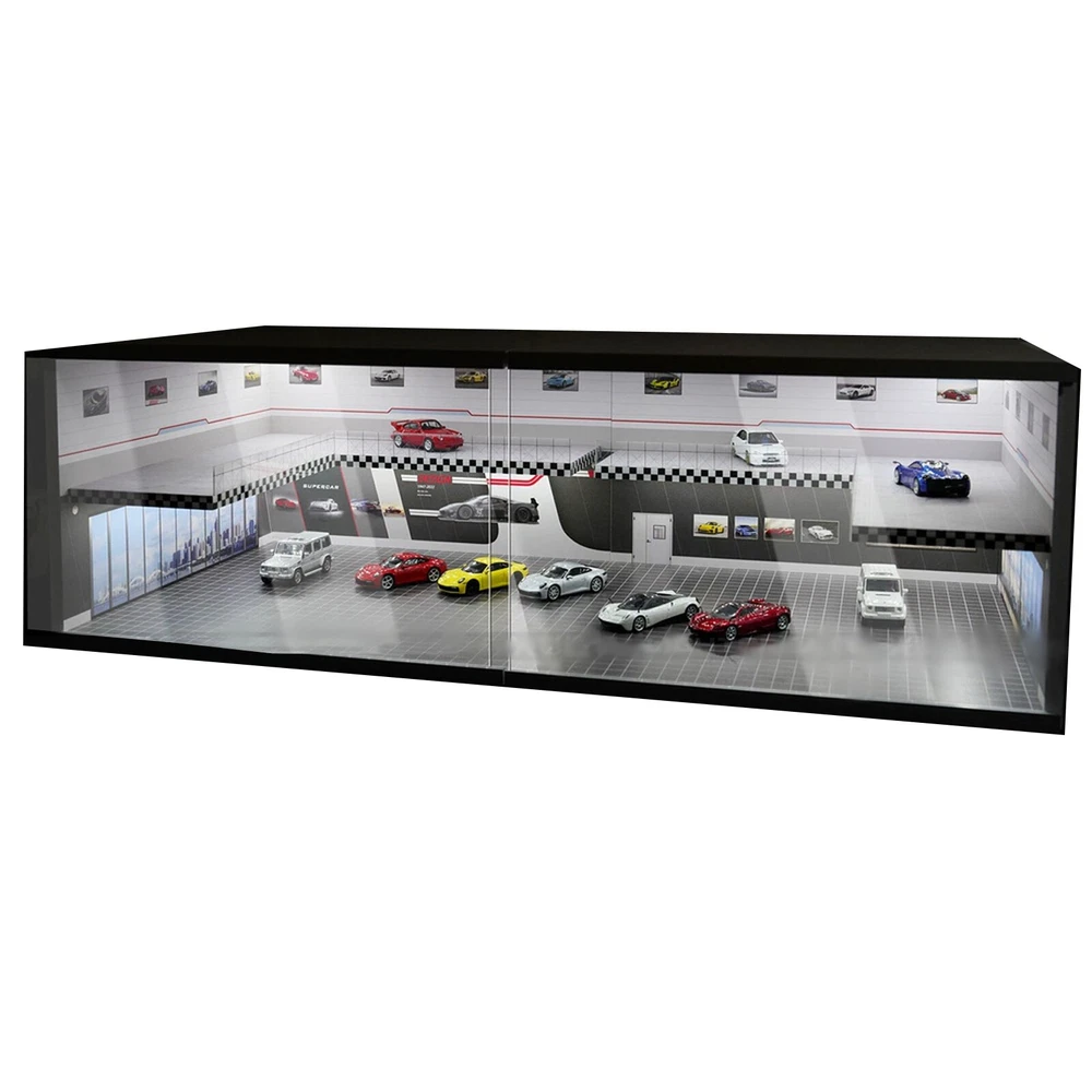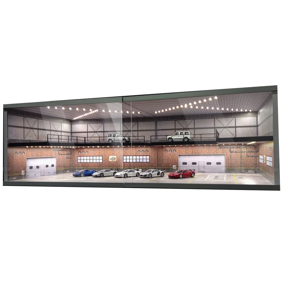 1:64 Diorama Car Garage Showroom Model LED Lighting Scene Display Model Gift