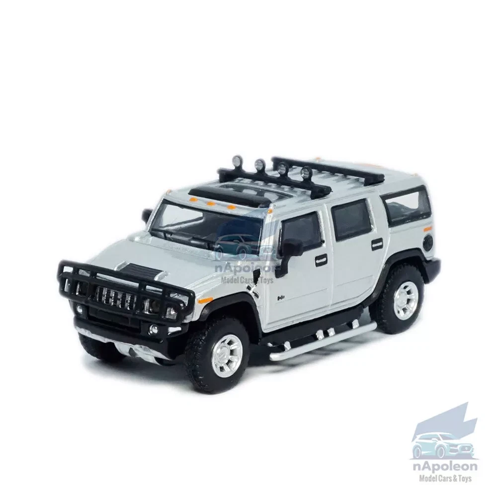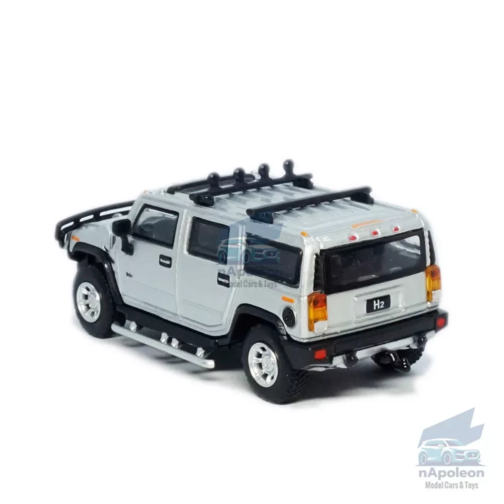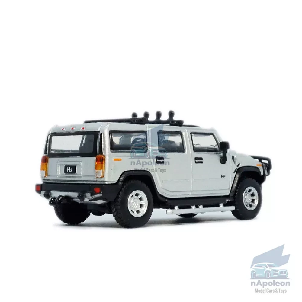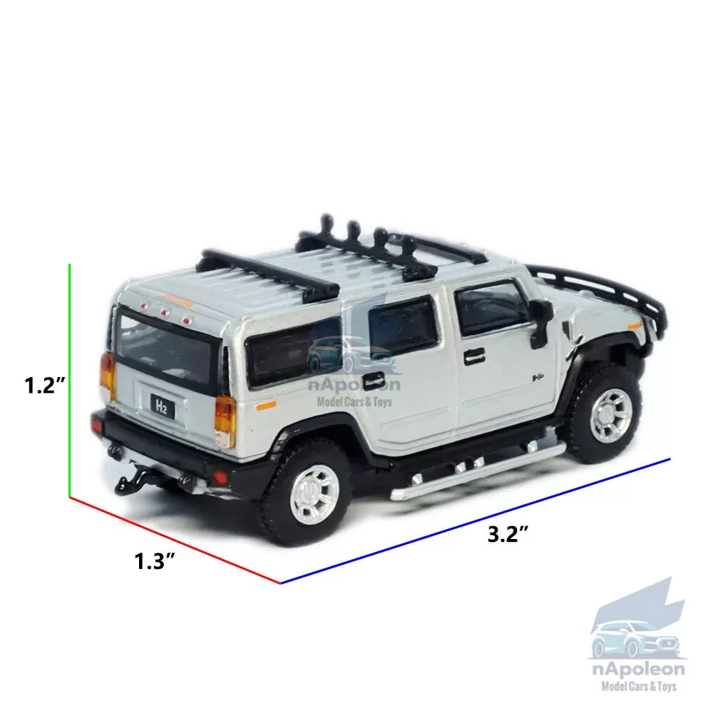 Item Type Diecast Model Vehicle Scale 1:64 Material Metal, ABS and Rubber Dimension L3.2" x 1.3" x 1.2" /L8.1 x W3.2 x H3.0 cm Color Silver, as picture shows Vehicle Type Off-road Vehicle/ ORV Specifics 1) Free wheels Packaging Packed in original color box, in excellent condition Tips Great choice of gift for kids, especially for Birthday, Christmas and New Year Gift Great item for collector, business gift, home decoration, office decoration, display Notice 1) Due to manual measurement, please allow a little error 2) Due to different monitors, the picture may not reflect the actual item Package include 1 x Hummer H2 2005 Model Car