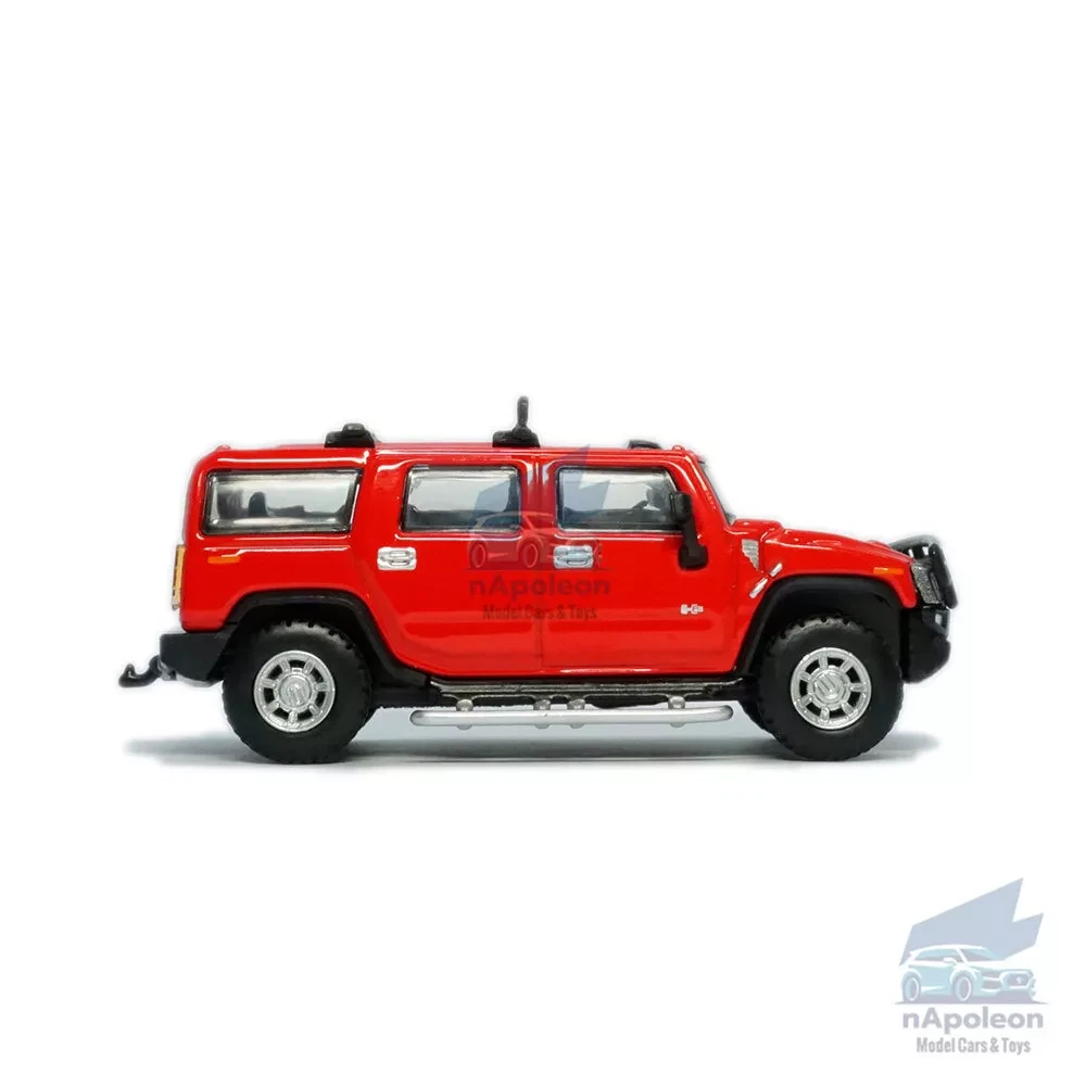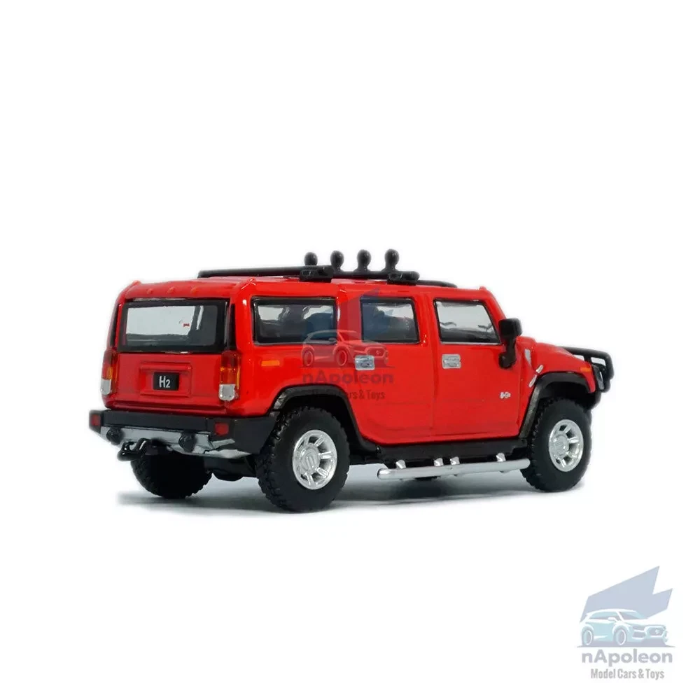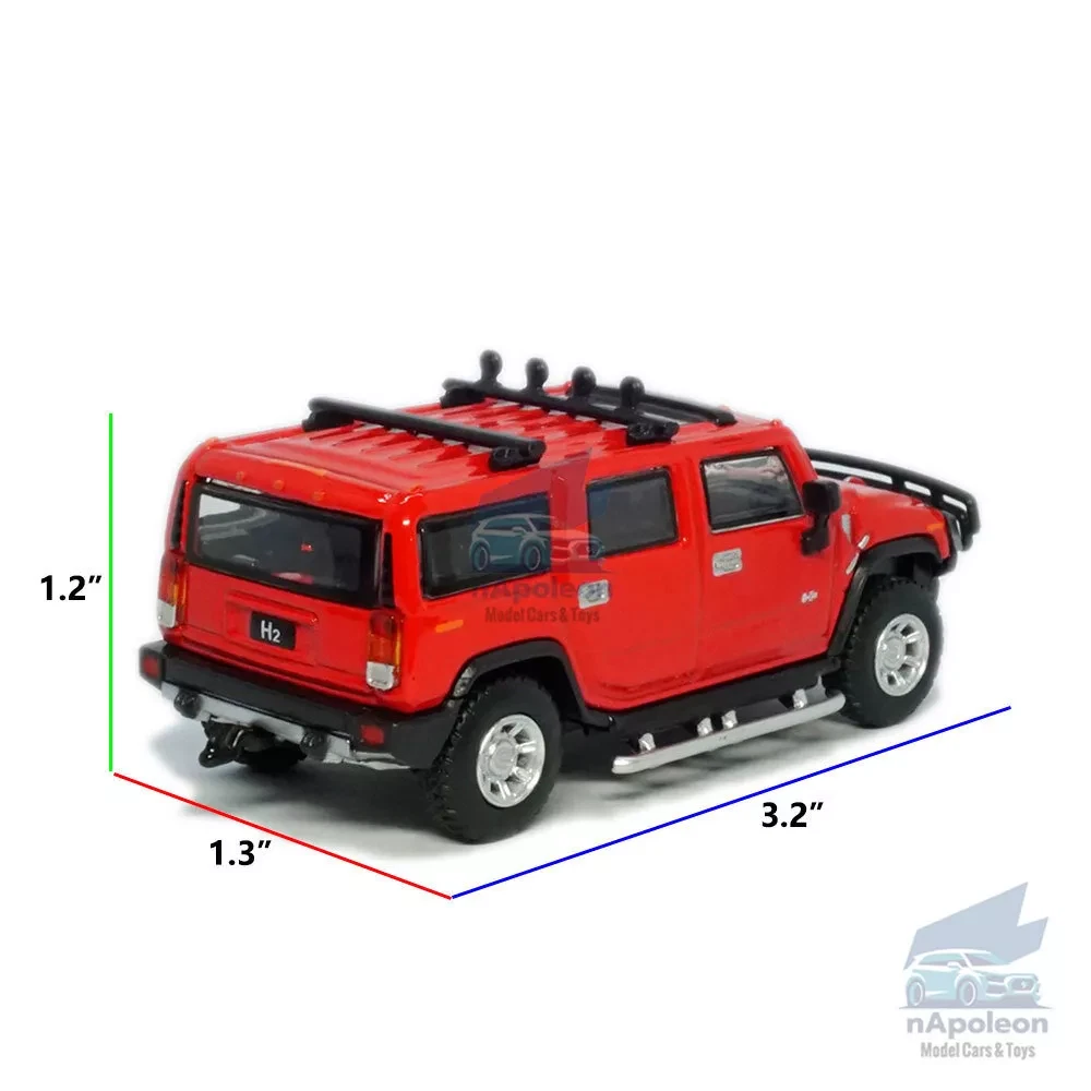 Item Type Diecast Model Vehicle Scale 1:64 Material Metal, ABS and Rubber Dimension L3.2" x 1.3" x 1.2" /L8.1 x W3.2 x H3.0 cm Color Red, as picture shows Vehicle Type Off-road Vehicle/ ORV Specifics 1) Free wheels Packaging Packed in original box, nice for gift or collection Tips Great choice of gift for kids, especially for Birthday, Christmas and New Year Gift Great item for collector, business gift, home decoration, office decoration, display Notice 1) Due to manual measurement, please allow a little error 2) Due to different monitors, the picture may not reflect the actual item Package include 1 x Hummer H2 2005 Model Car