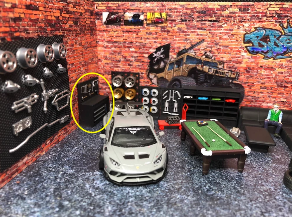 1:64 Diorama Car Garage Tool Model Maintenance Workshop Scene Display Prop Model Description: 1/64 New in box