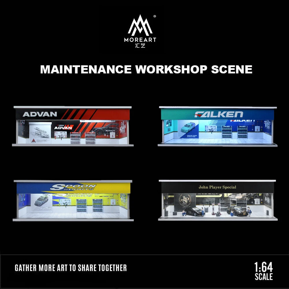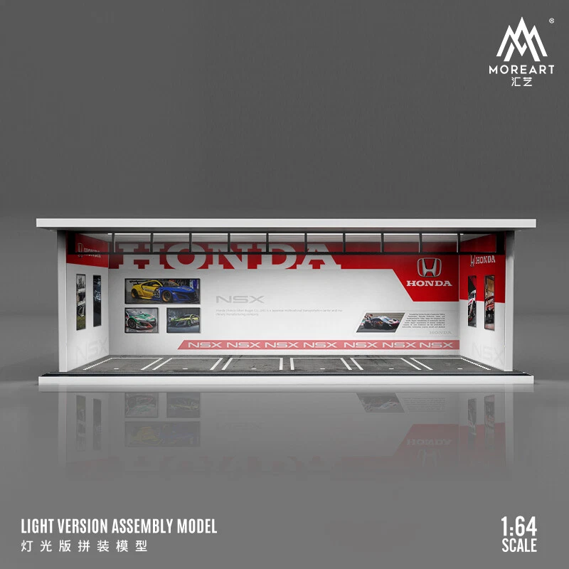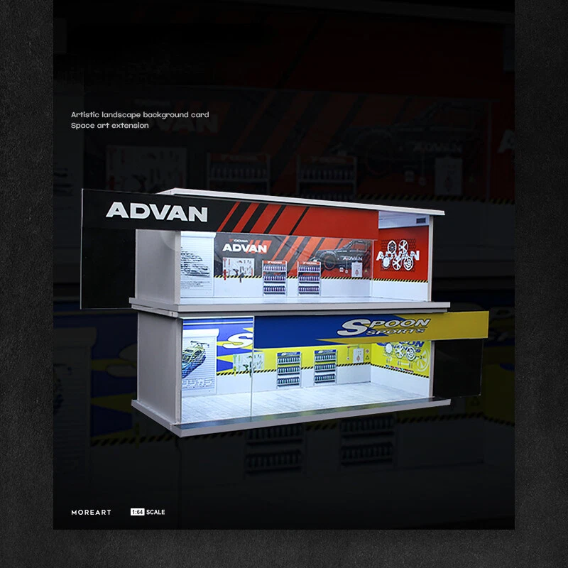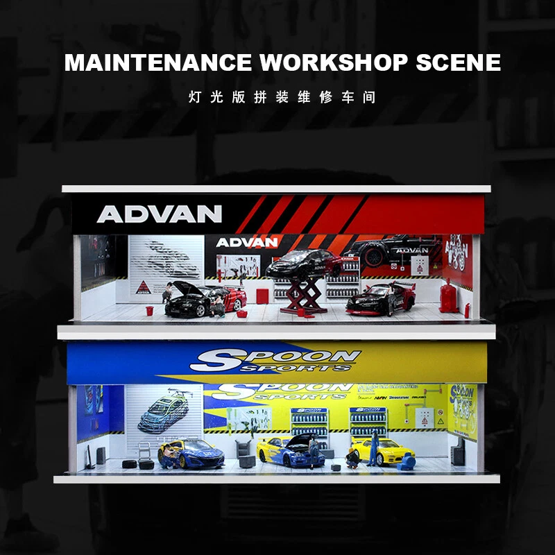 Product Description: Note:** Vehicle and figure models are not included, the pictures are for reference only** We highly recommend this product for use with our other Diorama Scene Models products. It can also be used with vehicle models and figure models. The playability is very high. We look forward to your combination and play! We show some combination effect pictures in the product images for reference~. Product Specifications: Fully handmade, the production process takes a long time [except vehicles and dolls in the picture]. Material: PVC base + ABS engraved bottom bracket + acrylic cutting board + transparent acrylic + LED lights Model Condition: Brand New Size: 30cm*13.3cm*10cm Note: You need to assemble it by yourself. This product can be assembled in minutes without glue or scissors. Package Included: 1 Set Car Garage Model